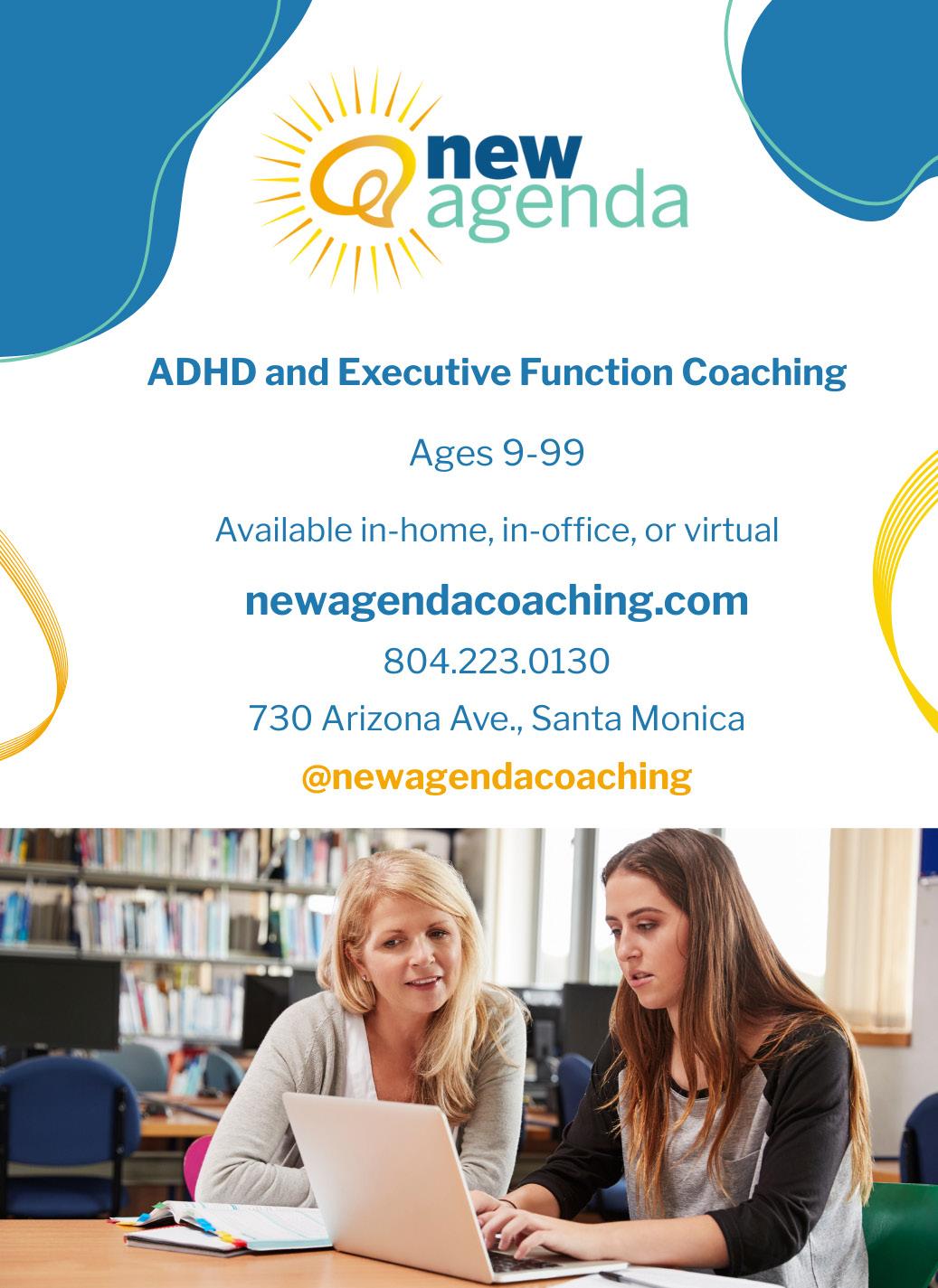 With coaching, students are able to reorganize and reinvent themselves. New Agenda Coaching professionals work oneon-one with students to organize and unify their calendar system and create better study habits.