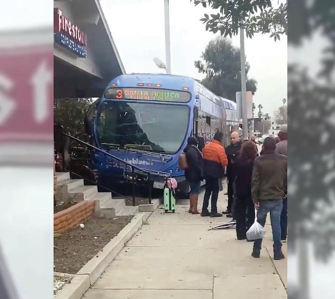 Big Blue Bus Crashes Into Side of Santa Monica Building