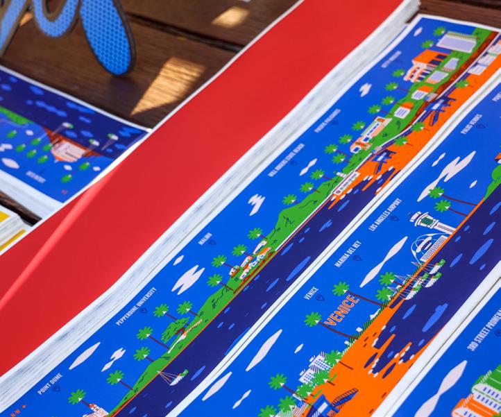 Of course, these are not just any old maps. To create something unique and reflect Los Angeles’ colorful creativity, Pacific Park collaborated with Chepe Daniel Báez, a renowned graphic artist based in Mexico City. Daniel Báez gorgeous illustrative ‘maps’ show all the landmarks and points of interest surrounding Pacific Park, including Point Dune, Malibu, Getty Museum, the Hollywood sign, the original Muscle Beach, the Pacific Coast Highway, and of course the Santa Monica Pier.