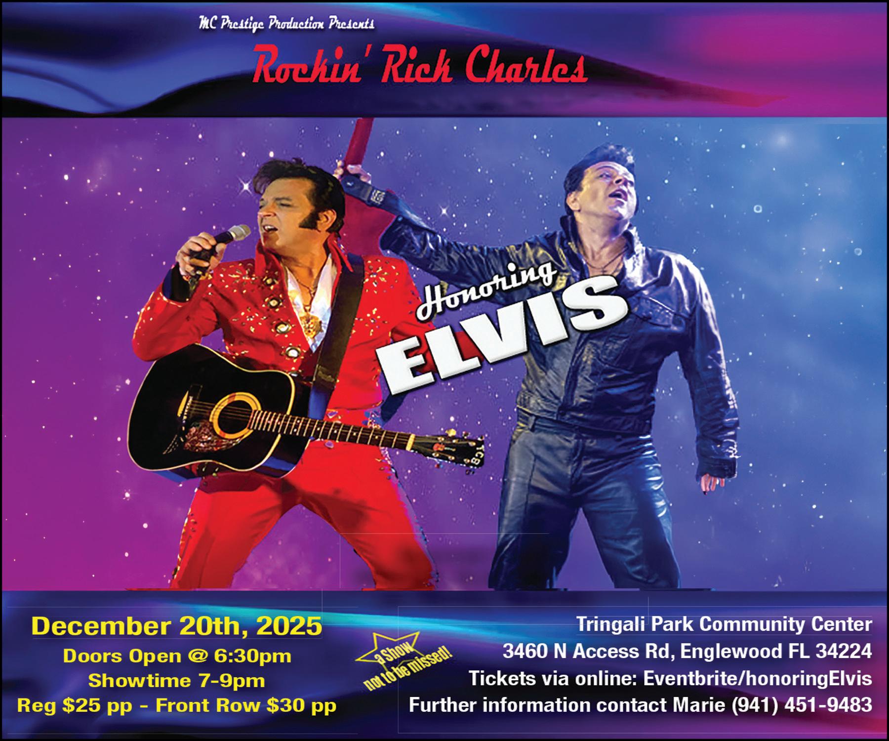 Get ready to rock around the Christmas tree at the Rotonda West Christmas Parade on Saturday, December 6 at 10am! The parade begins at Fellowship Church, 140 Rotonda Blvd. West, and ends at Rotonda West Community Center, 646 Rotonda Circle. This year’s theme, “A 50s & 60s Rock ’n’ Roll Christmas Parade,” invites you to slick back your hair, don your poodle skirts, and enjoy floats decked out in retro holiday flair. Expect Elvis, jukeboxes, hot rods, and festive hits bringing nostalgic cheer to life. Presented by the R.W. Outreach Committee, the parade will also feature a new “Best Decorated Golf Cart” category. For entry details or questions, email parade@rotondawest.org or call 616•540•7557