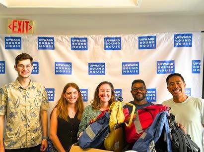 Last year’s collection of backpacks for Upward Bound House; This year’s backpack tags