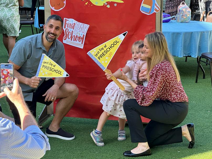 Martha Ross, Evelyne Markel, Linda Diane Anderson, Janet Searfoss, and Dorothy Nichols after a fun and fulfilling morning making sandwiches and trail mix and assembling sack lunches for distribution to homeless clients at The People Concern’s Annenberg Access Center. To join in, email Linda Diane at landolinda@ca.rr.com. First Day of Preschool!
