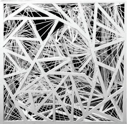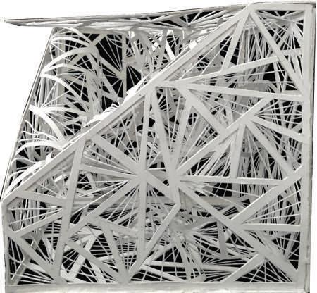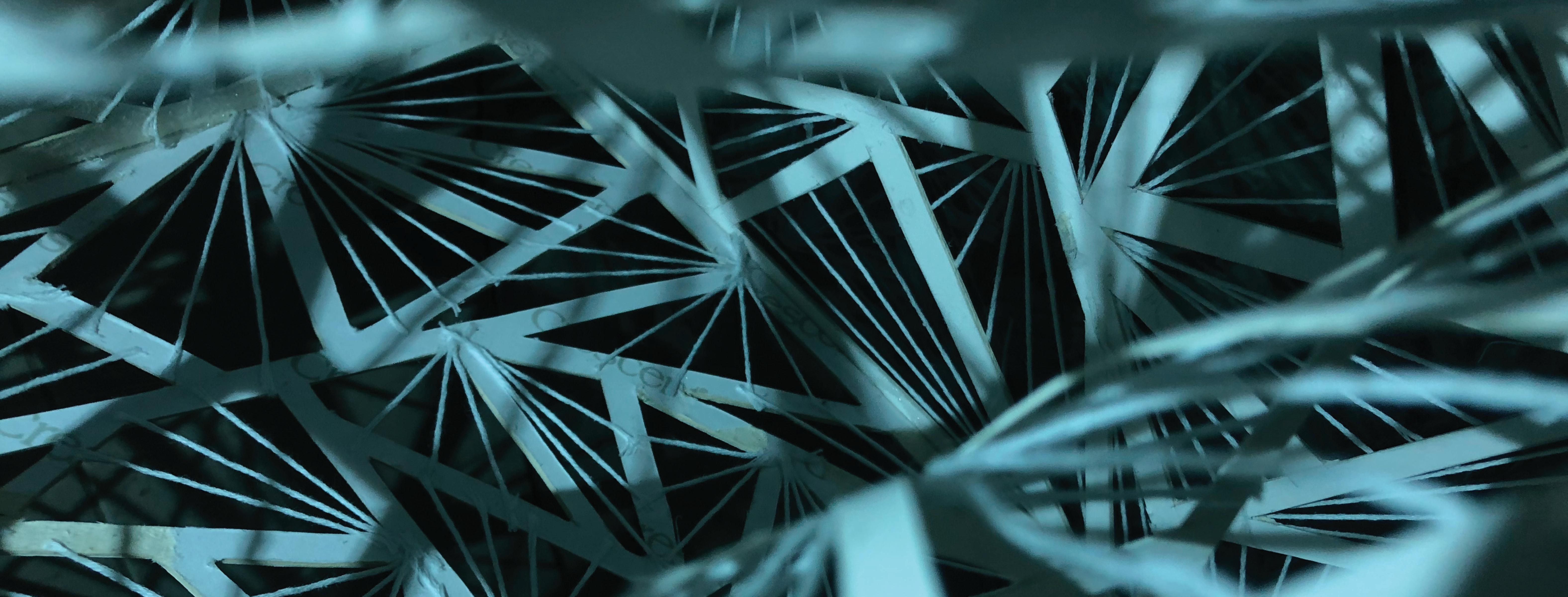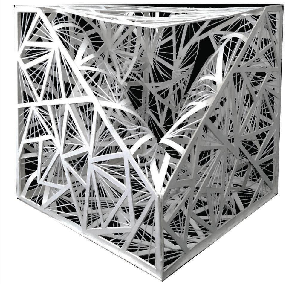 This project explores gestalt principles through a lighting object, originating from an exercise of two-dimensional drawings. The work incorporates principles of simplicity, figure-ground, and proximity on a 9x9 cube developed with arranged threads. When illuminated, the design creates intricate light and shadow patterns. This geometric structure transformed into a sophisticated visual experience reveals how fundamental design concepts can generate compelling spatial and perceptual interactions.