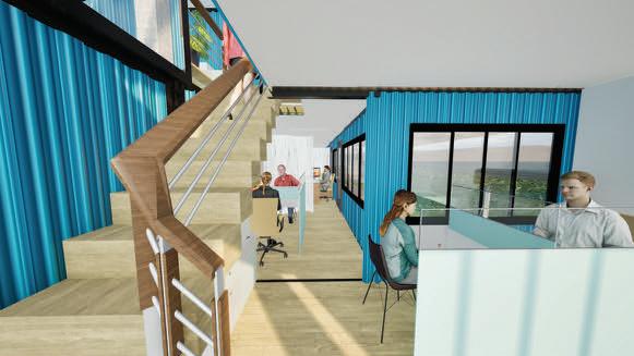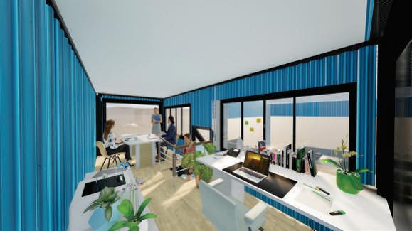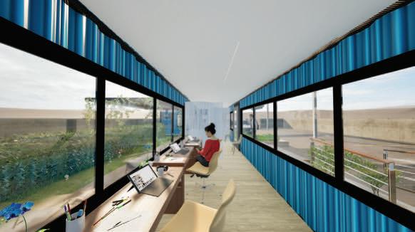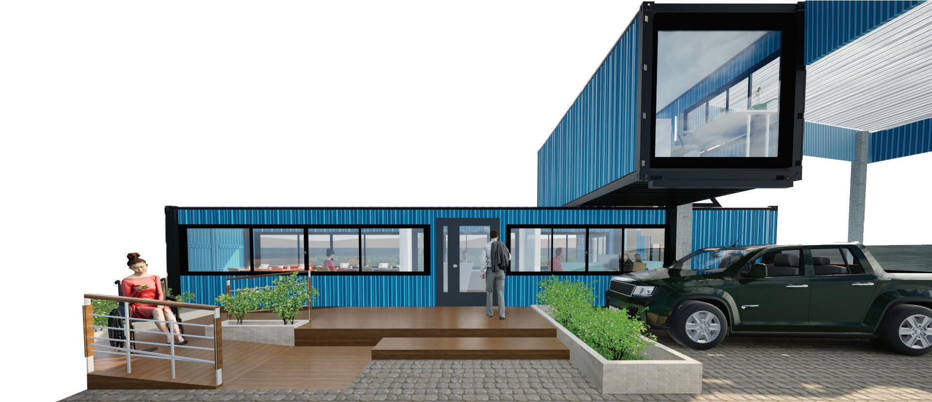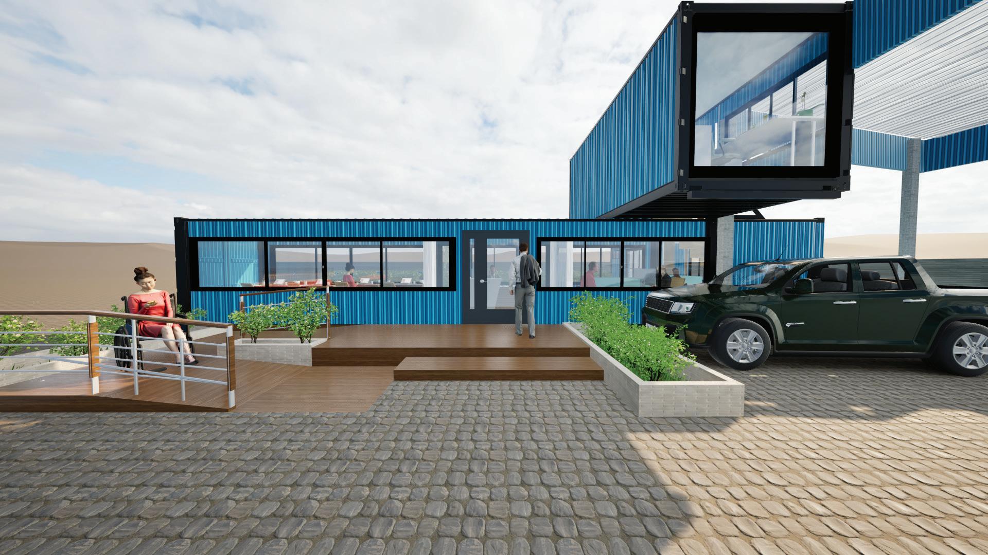 This project transforms three wagons into a functional and versatile workspace, strategically integrating areas to optimize workshop operations. The ground floor design incorporates a dynamic reception, three assessment areas, four employee workspaces, a functional bathroom, and a terrace that expands the work experience, while two specific exterior spaces are designated for vehicle verification. The private second level houses the manager's office and a conference room, enabling a clear separation between operational and administrative areas, facilitating both management and internal communication of the business.