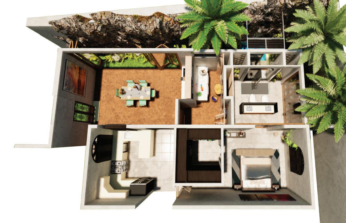 This project has been designed to transform a home's terrace into a multifunctional space that connects intimately with nature. The design introduces a dry bar, expansive areas for vegetation, and strategic doors that blur the boundaries between interior and exterior, allowing natural light and landscape views to permeate the space.