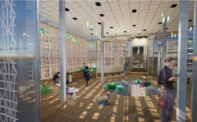This project reflects the history and transformation of Puerta de Tierra in San Juan, where the library's four-level structure embodies the site's evolution from a large mangrove island to an industrial area. Levels 1 and 4 feature curved, almost convex forms that symbolize the area's original mangrove landscape, strategically designed to dissolve noise. In contrast, levels 2 and 3 emerge as a cube projecting outward, representing the industrial era with angular shapes that cause sound to bounce back. The floor plan is consistently divided into three sections: main library programs in the front, service
