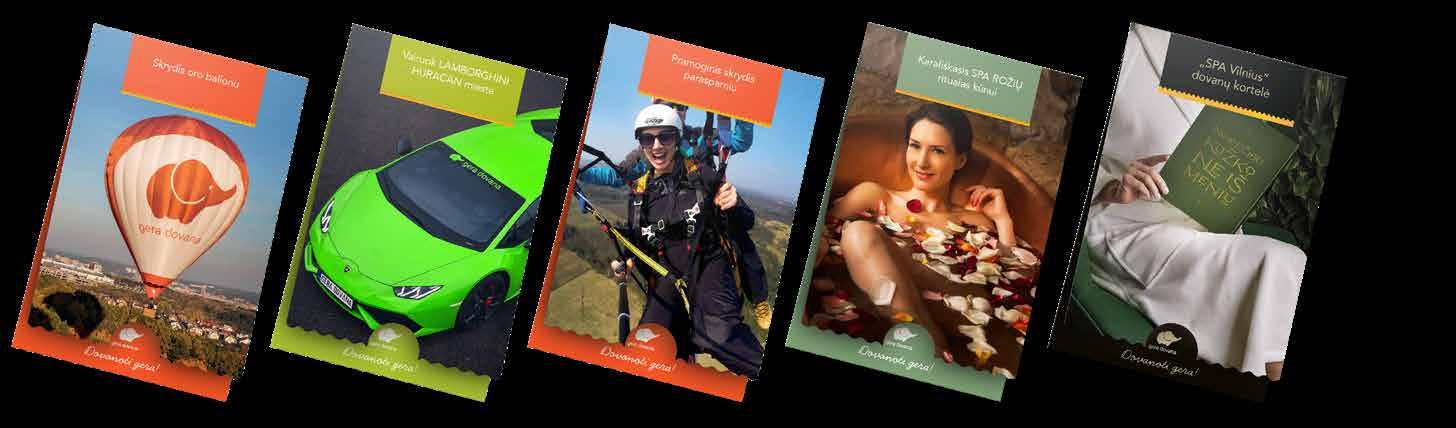 Norint padovanoti konkrečių paslaugų patirtis, siūlome rinktis konkrečias dovanų korteles (~500 skirtingų produktų) arba termokorteles įmautėse (~3000 skirtingų produktų).