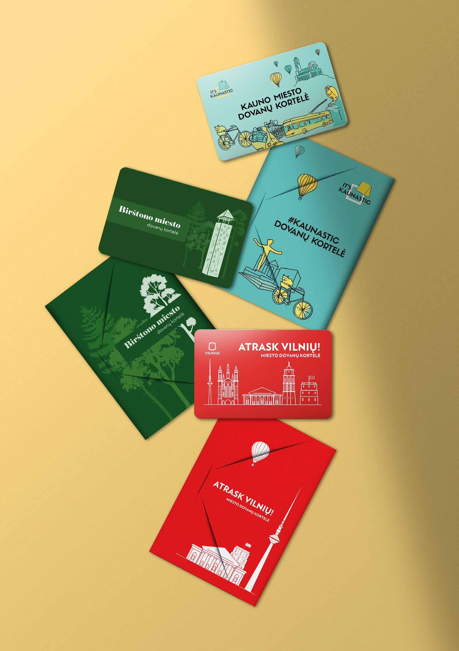 „Gera dovana“ produktai (pramogų, miestų dovanų kortelės/čekiai, dovanų rinkiniai):