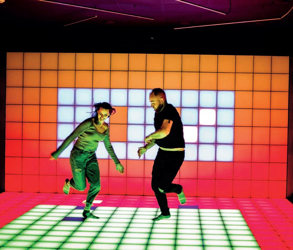 Randiņš, kurā katrs solis ir no svara! Ja vēlaties jautrību, sacensību azartu un daudz, daudz kustēties . Šis piedāvājums pārsteigs ar interaktīvu izklaidi, kuras centrā būsiet jūs uz digitālās spēļu grīdas . Izaicinājums jautrai un pozitīvi uzlādētai noskaņai bez neērtiem klusuma brīžiem – perfekta iespēja pārsteigt otru jau pirmajā randiņā!