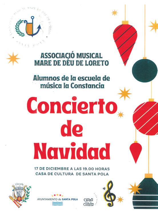 Circuito bicis, teatros y conciertos El 26 de diciembre, en la Glorieta, se pondrá a disposición del público un circuito de bicis organizado por el Parque de Tráfico, a partir de las 12:00 horas. En esta misma fecha, a las 19:00 horas, en la Casa de Cultura, tendrá lugar el concierto de Navidad a cargo de la banda Unió Musical de Santa Pola.