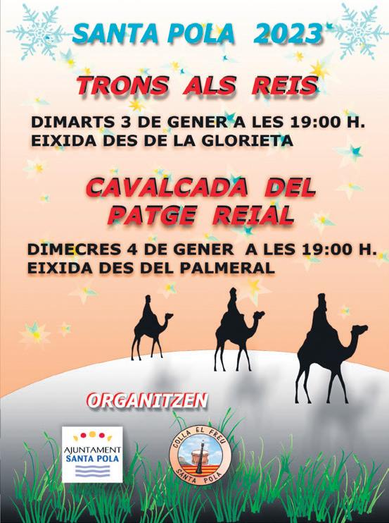 Santa Pola está de fiesta y, como todas las Navidades, ofrece una programación amplia, variada y para todas las edades. En ella se invita a todos los ciudadanos, grandes y pequeños, a disfrutar de conciertos, entrega de cartas a los pajes reales, de premios de los diferentes concursos realizados para embellecer la ciudad, etcétera.