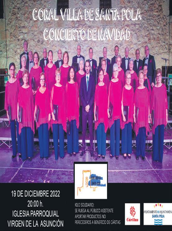 El lunes, cambiamos de ubicación, concretamente a la Iglesia Nuestra Señora de la Asunción donde, a partir de las 20:00 horas y de manera gratuita se podrá disfrutar del concierto de la Coral Villa de Santa Pola. Muy cerca de allí, en la Glorieta, el martes, 20 de diciembre (18:00 horas), habrá villancicos a cargo de grupos locales, siendo este el segundo año de esta iniciativa que reúne a todos los grupos que participan a lo largo del año, cantando dos o tres villancicos cada uno.