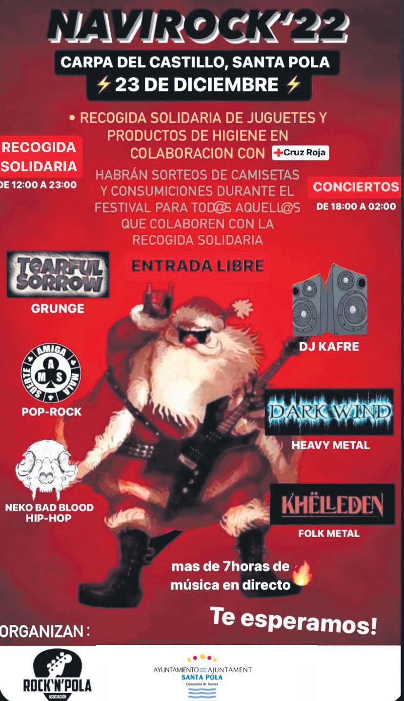 A las 18:00 horas del viernes, 23 de diciembre, en la Carpa Municipal, se abrirán las puertas del Festival de Grupos de Rock Navirock 2022, con entrada libre para todos aquellos que quieran disfrutar del panaroma musical de la comarca.