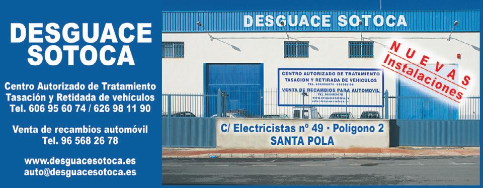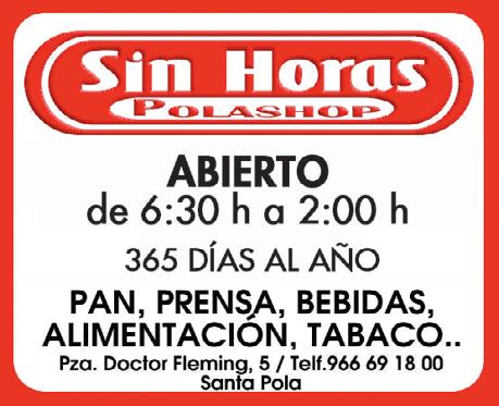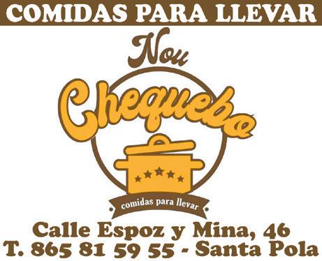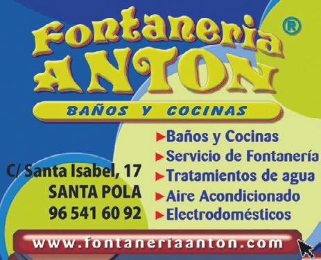 CURSO DE MAQUINARIAS: Consigue tu carnet en un día. NO CADUCA Consulta próxima fecha de examen. Tel. 608 419 719 C/ Maestro Alfosea, local 3 info@topnotchacademia.com www.topnotchacademia.es CHAPA Y PINTURA www.auto-mag.es Poligono Industrial 2, C/ Pintores 8, Santa Pola (Alicante) · Tel. 966 693 933 AUTO-MAG Horario : L-V de 8:30 a 17:00 MECÁNICA en GENERAL TODAS LAS MARCAS C/. Ramón y Cajal, 42 - Tel. 965 412 155 CORTINAS DECORACIÓN T. 965 41 21 55 - C/. Ramón y Cajal, 42 - SANTA POLA FONTANERÍAS / PLUMBING DESGUACE · VEHICLE DISPOSAL MOTOR • VEHICLES MAINTENANCE GUIDE CORTINAS Y DECORACIÓN C/ Ángel, 17 Santa Pola Tel.: 965 41 41 22 - 609 64 00 05 Fontanería · Servicio técnico Localización de fugas Cámaras de inspección Trazado de tuberías Desatascos Grupo Helvetia 966 44 40 81 622 19 84 32 C/ Ramón y Cajal, 15 esq. C/ San José SANTA POLA NUEVA OFICINA AGENCIA EXCLUSIVA Asesoramiento integral de seguros Vida, Salud, Pyme, Autos, etc ... rmulet@agencia.caser.es Automatiza tu toldo con motor desde IVA incluido OFERTA 94,98€ 965 432 350 PRESUPUESTO GRATIS c/ Brea, 9 (Pol. Ind. Carrús) Elche FERRETERÍA · HARDWARE REPARACIÓN CALZADO · SHOE REPAIR ELECTRICIDAD · ELECTRICITY SEGUROS · INSURANCE TOLDOS · AWNINGS INSTALACIONES S uci es de c fianza Desde el año 2001 C/ Almirante Antequera, 36 Tel. 965 41 47 99