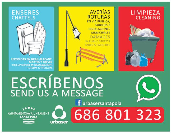 Edita : Baluarte Comunicación S.L. · Depósito Legal: A-281-2006 · Nº 678 · Tirada: 10.000 ej. Publicidad : publicidad@periodicosantapola.es C/Canalejas, 40 bajo - Santa Pola - T. 966 696 151 Sábado 25 de febrero de 2023 redaccion@periodicosantapola.es Una ventana semanal a la vida social económica, cultural y deportiva Concejalía de Limpieza Grac ia s p o r s u c o l a b o r a ción !! limpias Cuidar Santa Po l a e s m á s s e n c ill o entre todos
