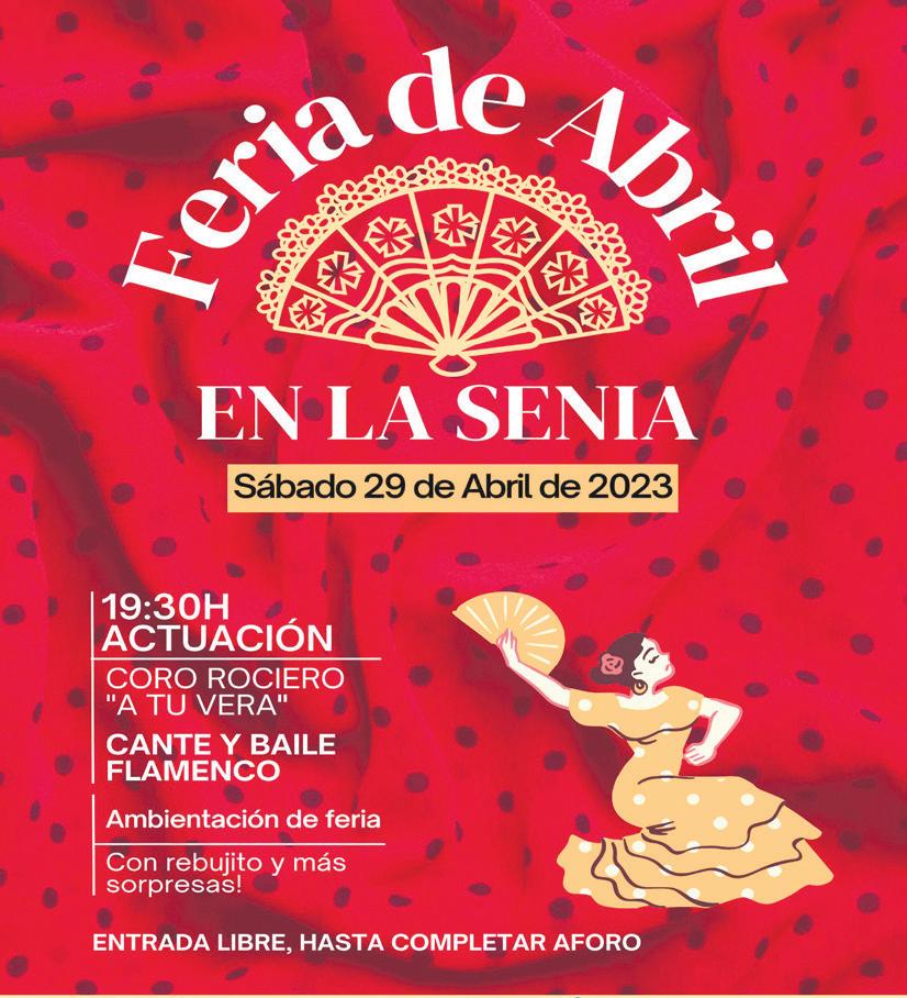 La Feria de Abril llega a La Senia, y con ella, una noche llena de música, baile y diversión.Mañana sábado 29 de abril, a partir de las 19:30h, el Coro Rociero “A tu vera” llevará el cante y el baile flamenco al Centro de Convivencia para la 3ª edad “La Senia”.