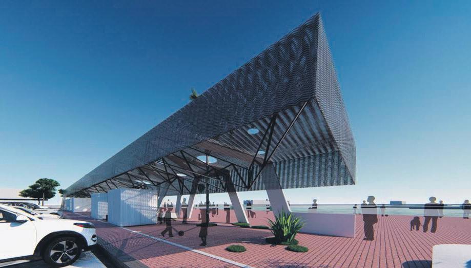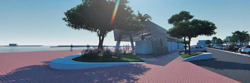 En la zona de sombraje donde se tiene proyectada una futurista pérgola, además de los puntos de venta de tickets de las diferentes compañías de tabarqueras, se instalará mobiliario urbano y vegetación, para conseguir un espacio agradable, además de tér-