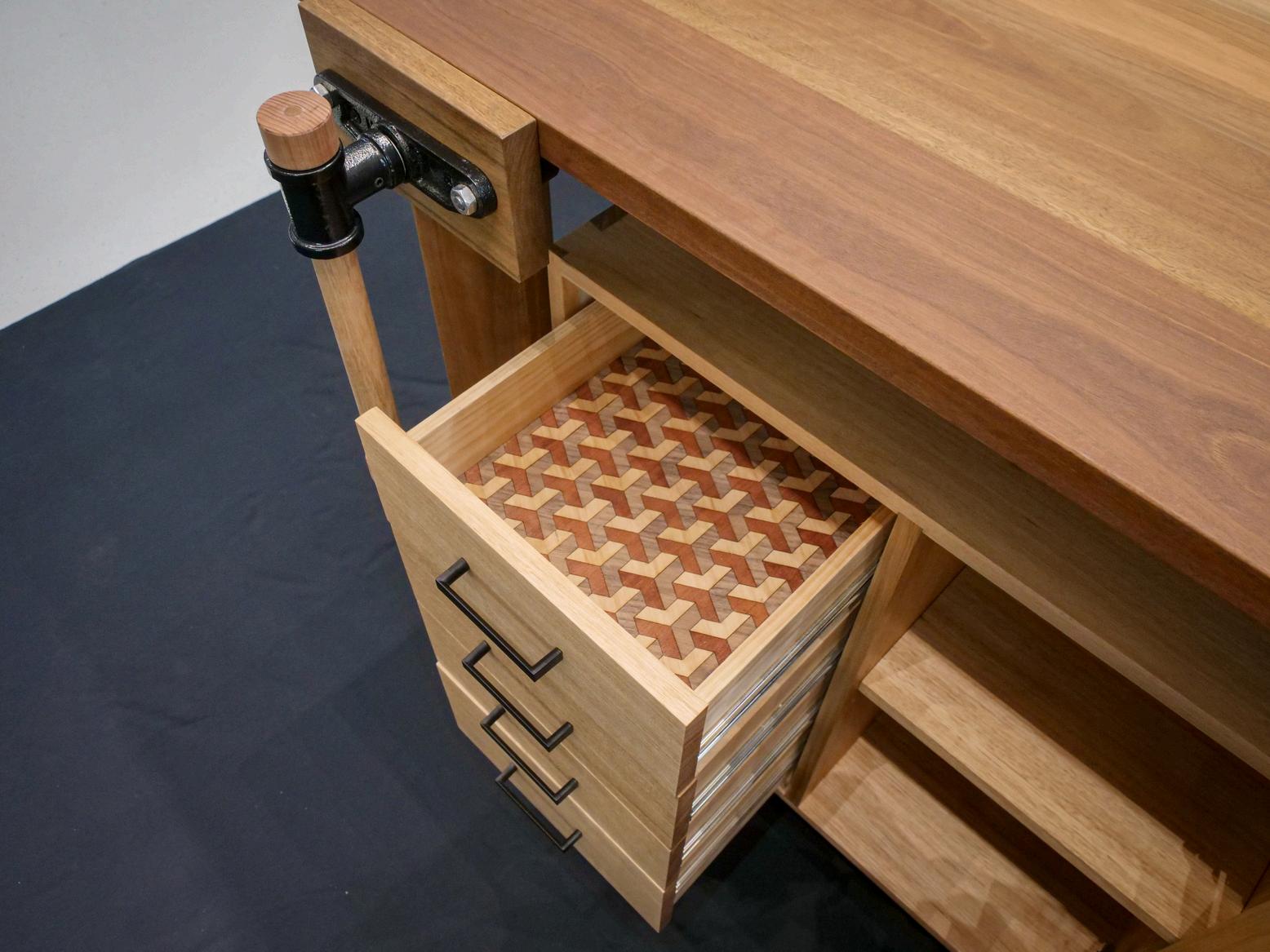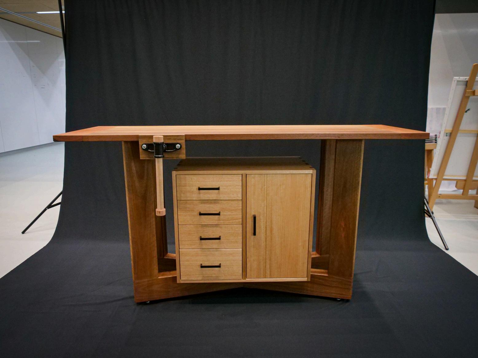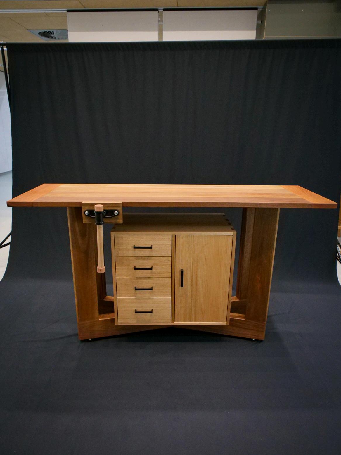 I intend to use NSW Spotted Gum for the benchtop and legs because it is strong, durable, and relatively affordable compared to other Australian hardwoods For the drawers and carcass, I will use Tasmanian Oak, which provides a pleasing visual contrast while still being functional and reliable The bench will also feature a steel vice, a waste cut-out hole, and drawers for storage To highlight the natural beauty of the timber, I will finish the bench with a natural oil that enhances the dark grain of the spotted gum while contrasting nicely with the lighter oak