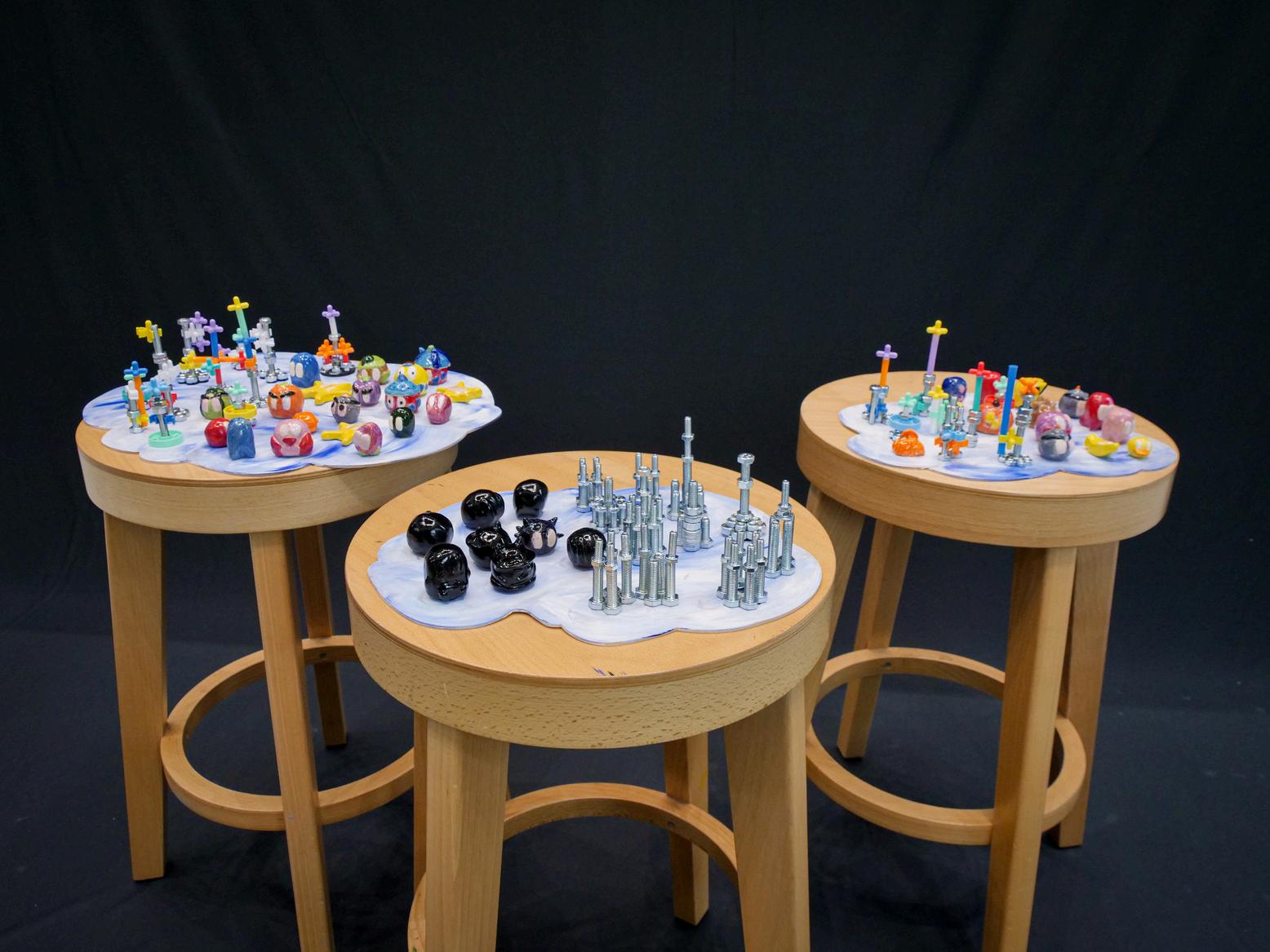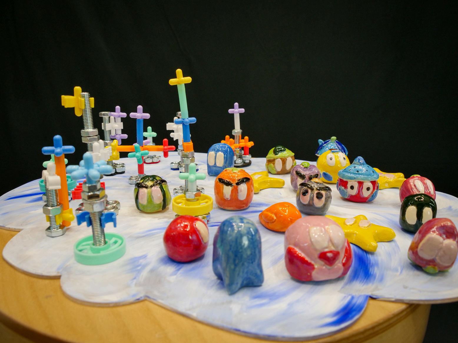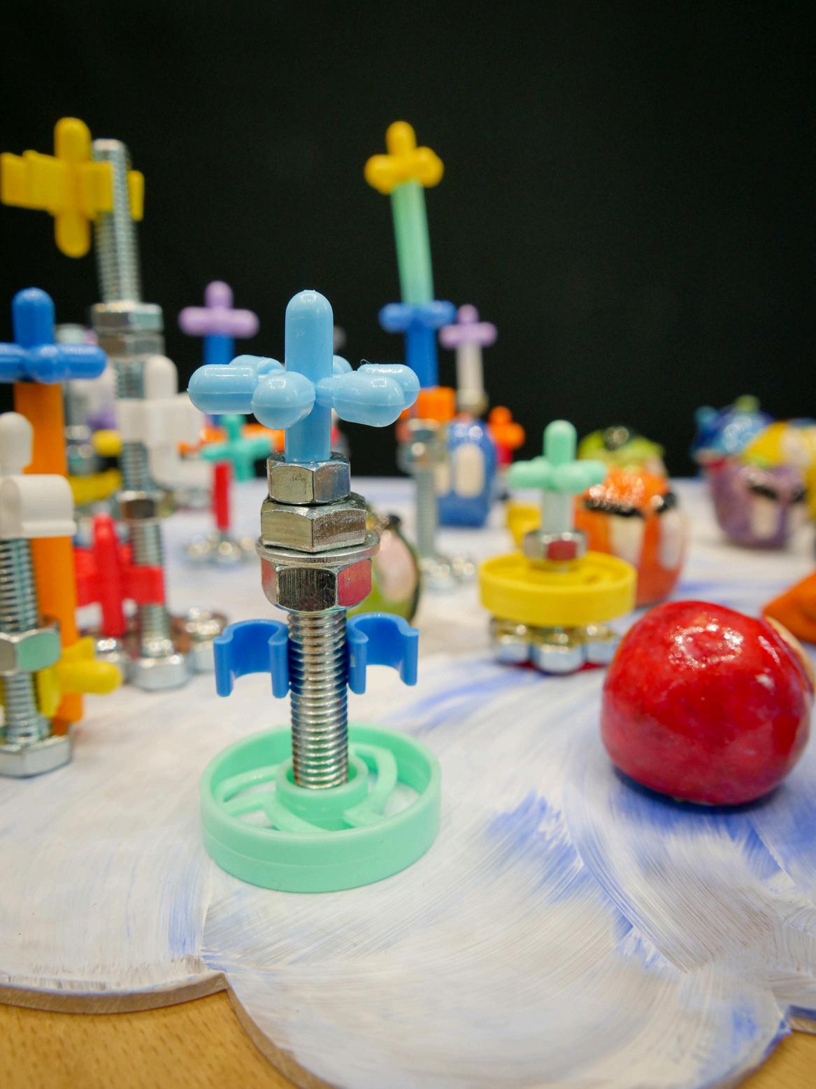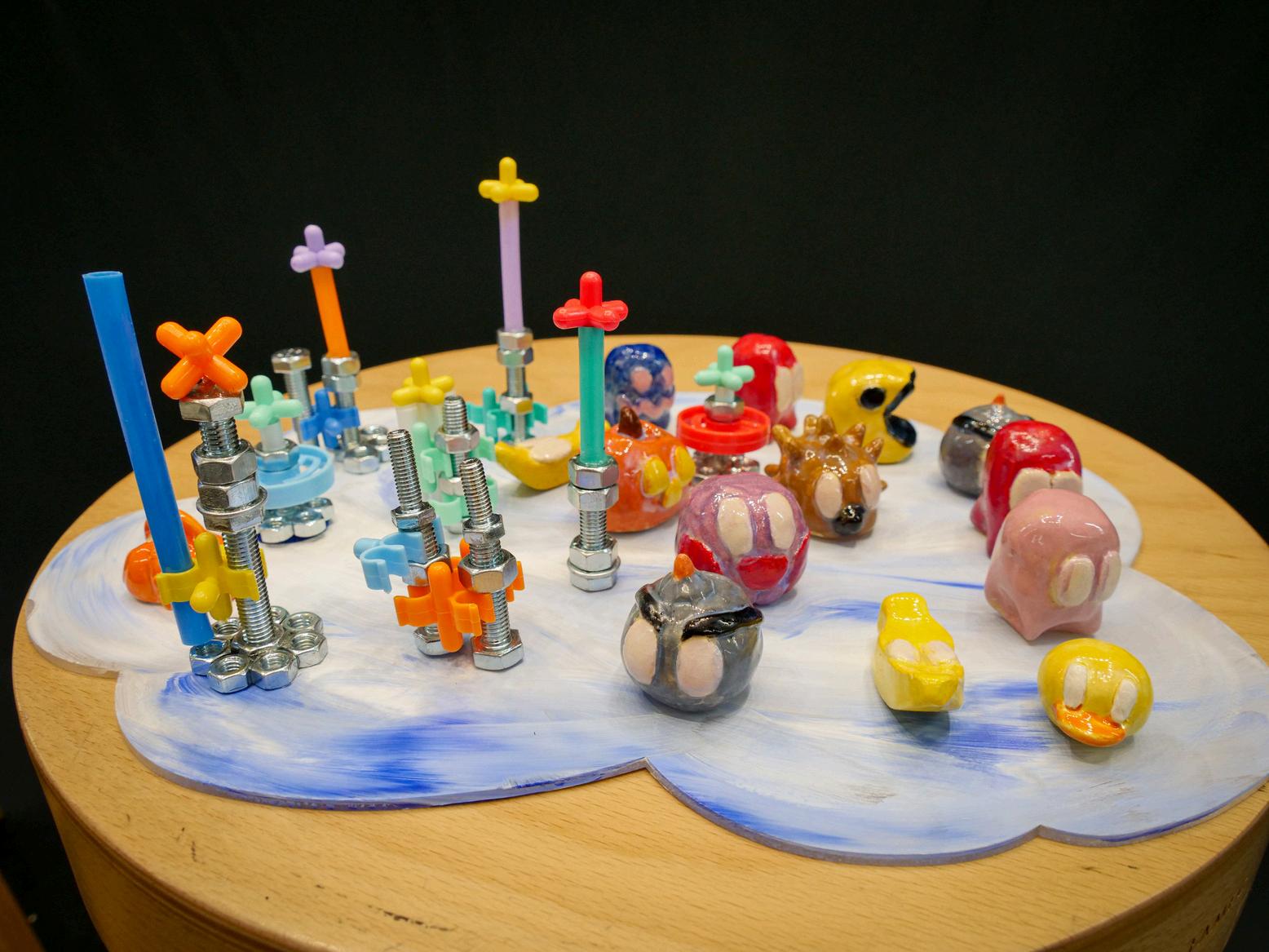 “Liam’s Klippelmon Chronicles” is a mixed media work that investigates the contrasting effects of divergent artistic styles and materials. My artistic intention is to evoke contemplation on the emotional and psychological tensions that arise when disparate mediums intersect and challenge conventional perceptions of “art.” Through this piece, I invite the viewer to reconsider creativity as a profound manifestation of human ingenuity and skill. The conceptual practice underpinning this work centers on the expansive potential of the human mind in conceiving and constructing art objects and sculptures. Drawing inspiration from the duality inherent in a chess set ,black versus white, I designed the work to reflect two opposing elements: hand-sculpted figurines alongside industrial metallic objects My material practice involved the use of clay to craft figurative characters from a video game I developed, Super Bubbles Fruit Shooter (August 2022), which serve as personal expressions of my psychological and creative processes Complementing these are assemblages of nuts, bolts, screws, and plastic components, inspired by the sculptural vocabulary of Robert Klippel, after whom the piece is partially named. Specifically, I was captivated by Klippel’s works No. 300 and No. 1037 - 1126, admiring their ability to transform discarded materials into complex, dynamic forms.