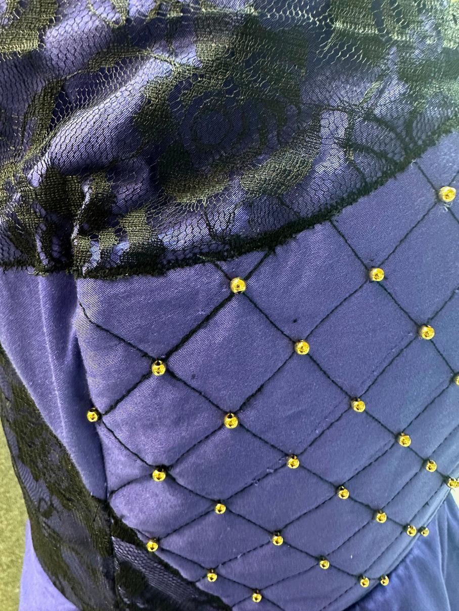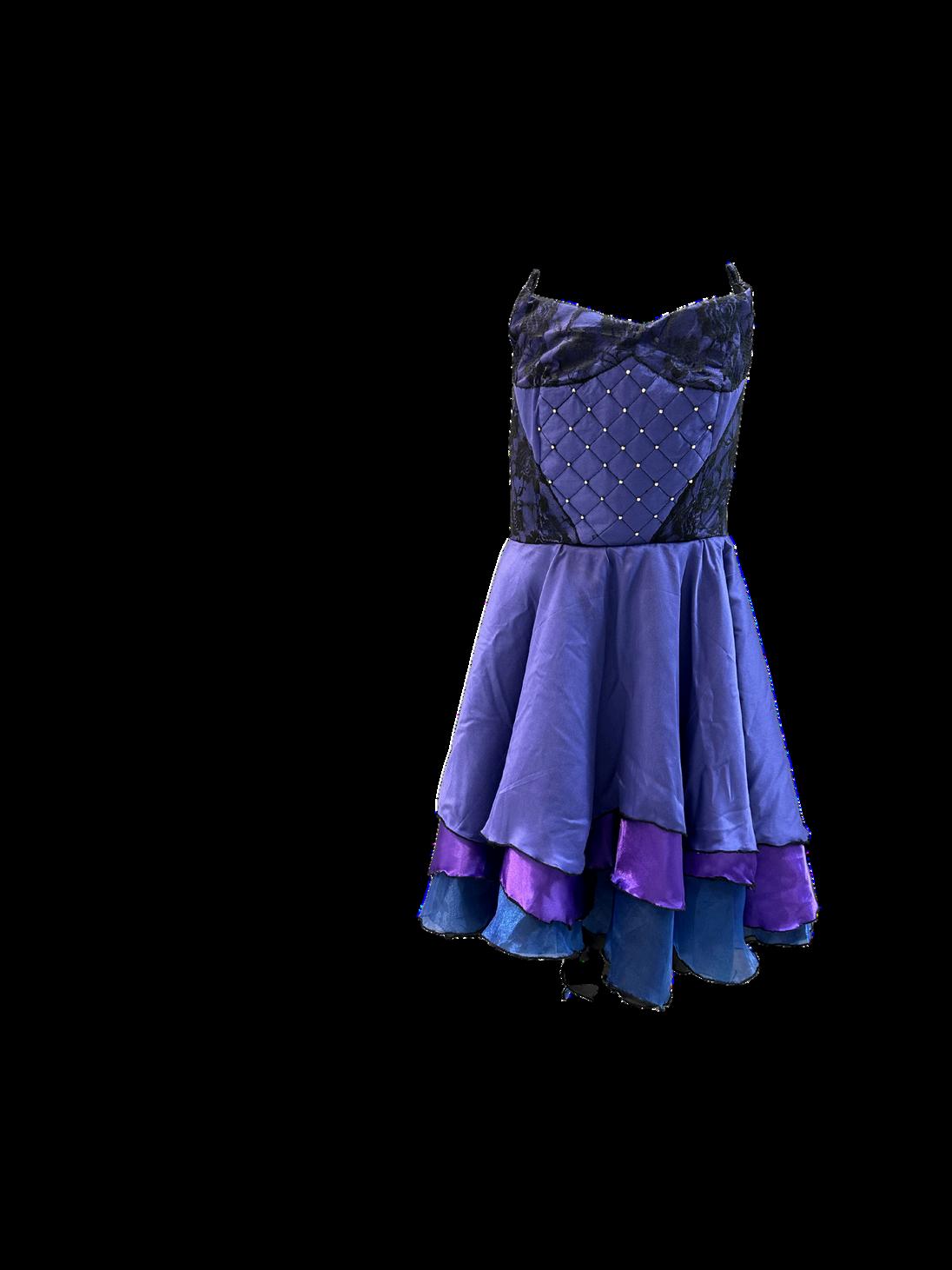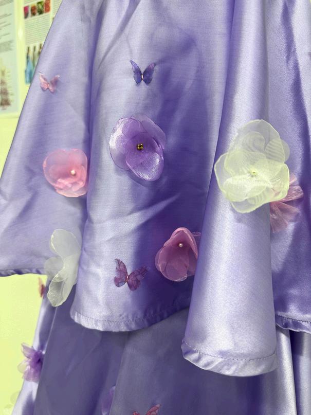 ecific focus by Disney’s features an th multiple emline. The eaturing a neckline that smoothly into contrasting spiked edges. corative Lace appliqué and tched quilting add an on-theme pect to the bodice in addition to shment of the gold beading. To t the dress, the final design s a pair of edgy yet elegant loves manufactured from highther material The motif of lace xtends to the gloves, and the ading creates an elevated finished e design is inspired by the Disney s films, specifically a blend of the two central female protagonists Evie and Mal The costume is r cosplayers passionate about both characters, Mal and Evie, usly Evie’s chic blend of regal d modern edge, inspired by The and present through rich blue rious fabrics, royal motifs and uming, is majorly reflected in the n. The design also incorporates Mal’s style, which is heavily by the villain Maleficent and is d as being edgy and rebellious, nine and vaguely regal touch. Her es a darker colour palette of d black, punk-inspired elements leather fabrics, asymmetry, abrics, and bold zips. Conversely, softness, elegance and royalty of ming is evident through the lace atin fabrics and gathered a-line Cosplay costuming serves the bringing beloved characters to life ments that are highly accurate to c of the original costume or a nterpretation A costume must be comfortable and durable as ed within my design through its uick and effortless changes