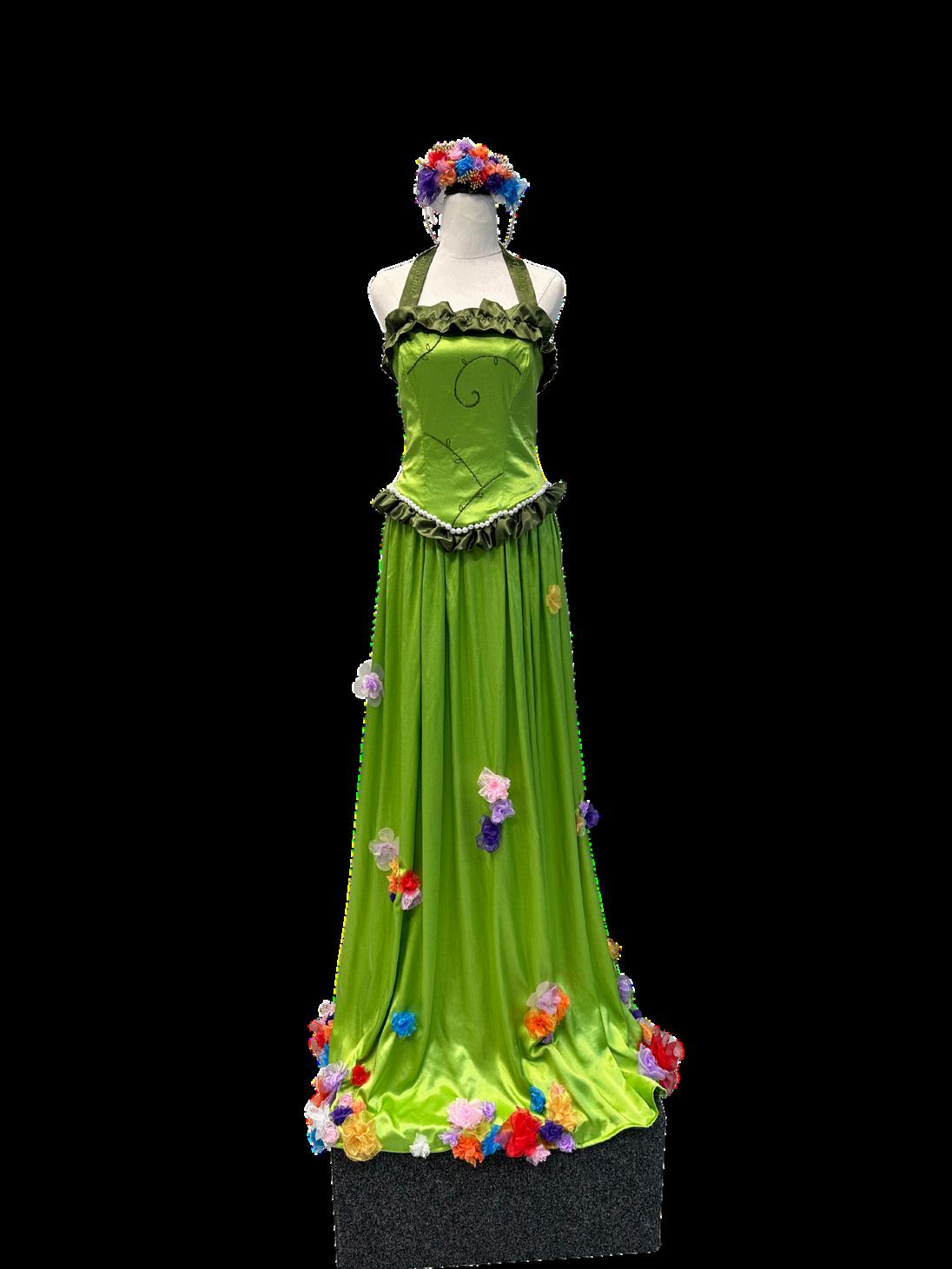 My outfit aims to symbolise more natural faery imagery, focusing on the idea of the fae being connected to mushrooms and toadstools through fairy rings. I link a more modern feminine dress design to the old world fantastical tales of the mediaeval era.