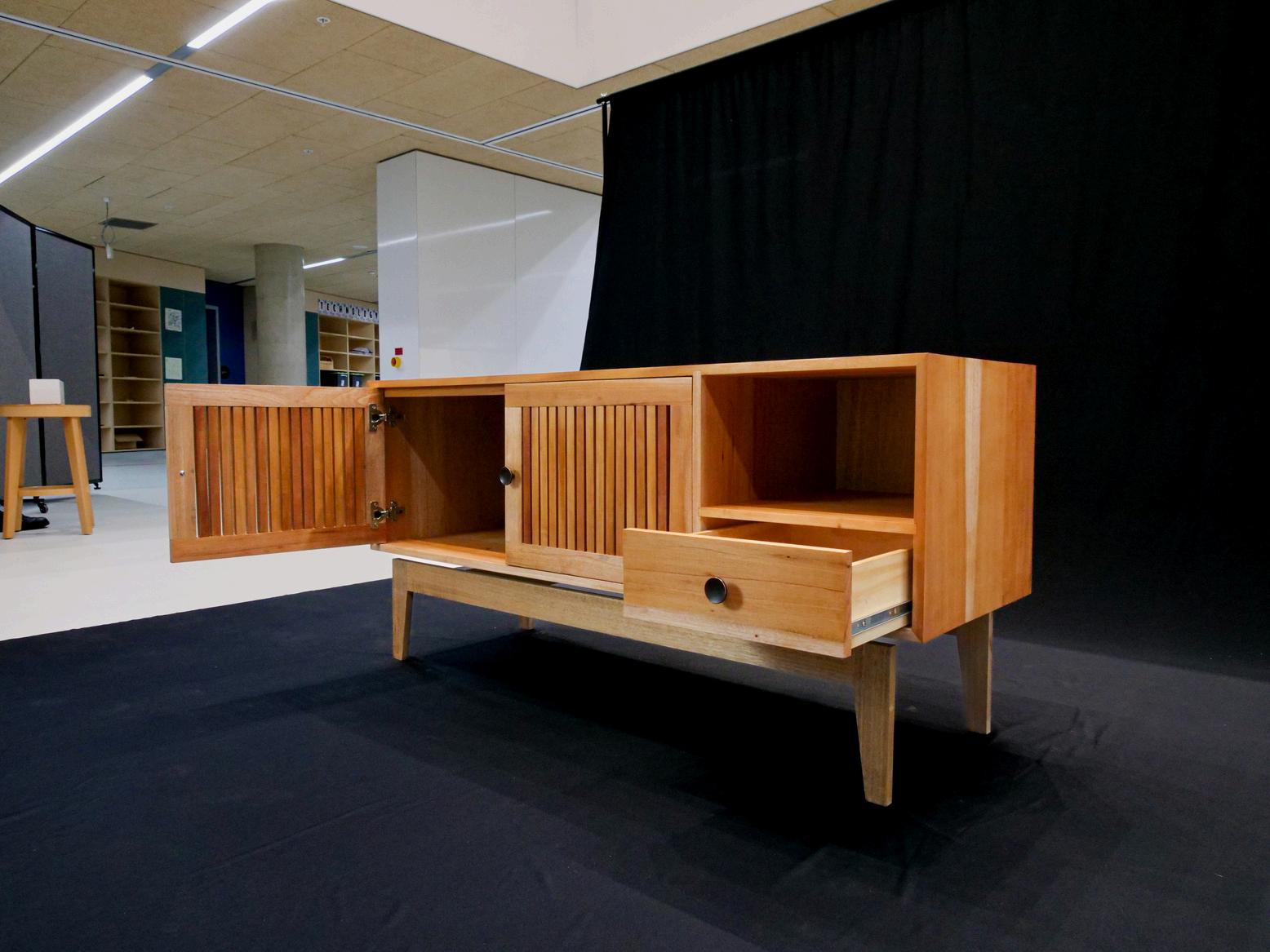 Motivation: I chose to construct this TV unit because I wanted to challenge myself with both functional joinery and aesthetic detailing, while working with premium hardwoods such as Fijian mahogany, oak, jarrah, radiata pine, and Pacific maple These materials allow me to explore advanced woodworking skills such as custom timber handle making, precise drawer construction, and high-quality finishing techniques This project also has personal significance as it is intended for long-term home use, meaning durability and professional presentation are essential