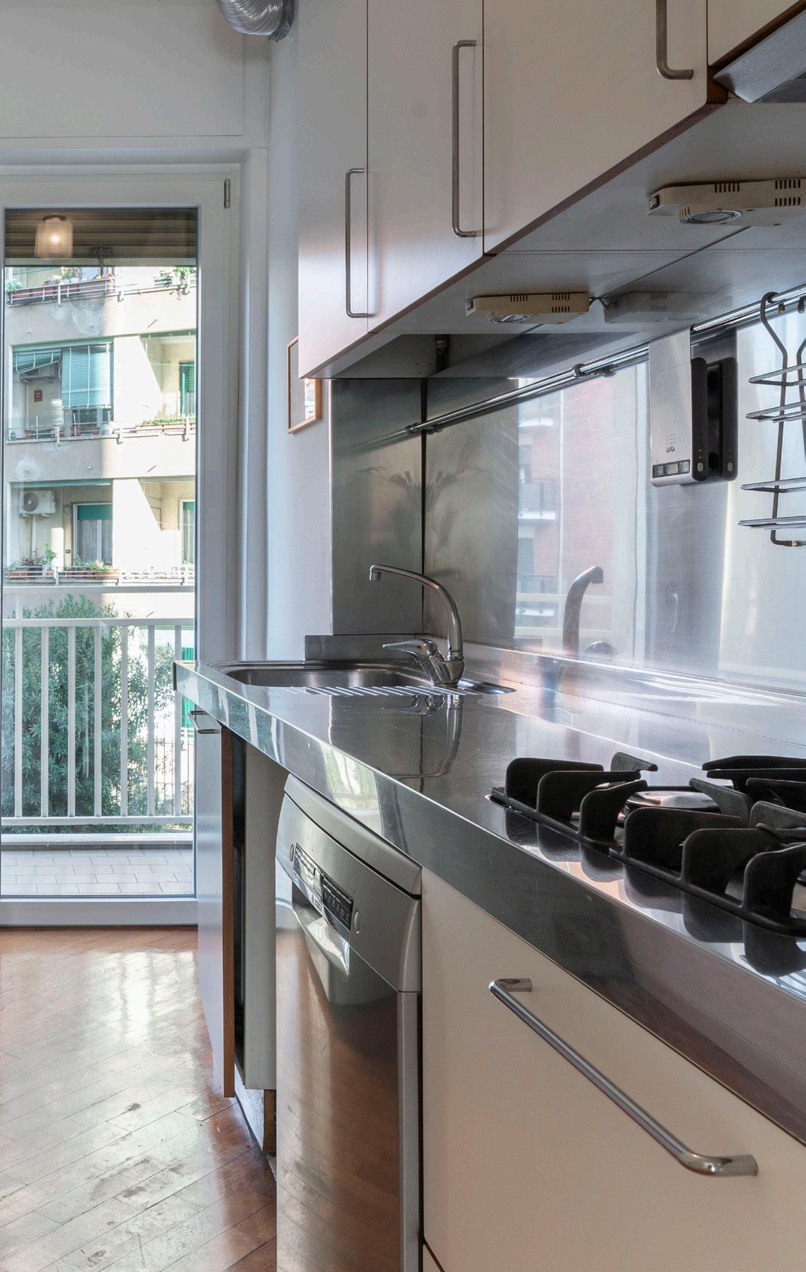 I balconi ampliano l’esperienza abitativa e favoriscono un dialogo naturale con l’esterno. Quello principale, affacciato sul verde condominiale, diventa un’estensione del soggiorno: uno spazio da vivere nelle mezze stagioni, ideale per una pausa d’aria o come angolo relax. Il balcone secondario, più tecnico, offre invece un appoggio comodo per attività di servizio. Entrambi contribuiscono a rendere gli ambienti più ariosi e luminosi.