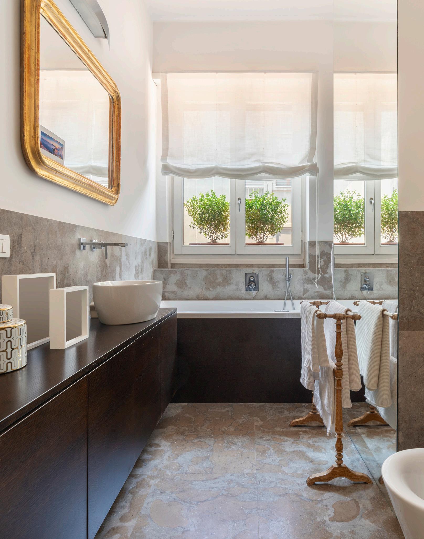 I due bagni, entrambi ristrutturati, offrono un perfetto equilibrio tra funzionalità e raffinatezza. Il bagno principale, finestrato e completo di vasca da bagno, invita al relax con materiali scelti con gusto e cura del dettaglio. Il secondo bagno, comodo e ben organizzato, è ideale come servizio per ospiti o come supporto alla routine quotidiana. Entrambi gli ambienti sono ben rifiniti, con pavimenti in gres e accessori moderni.