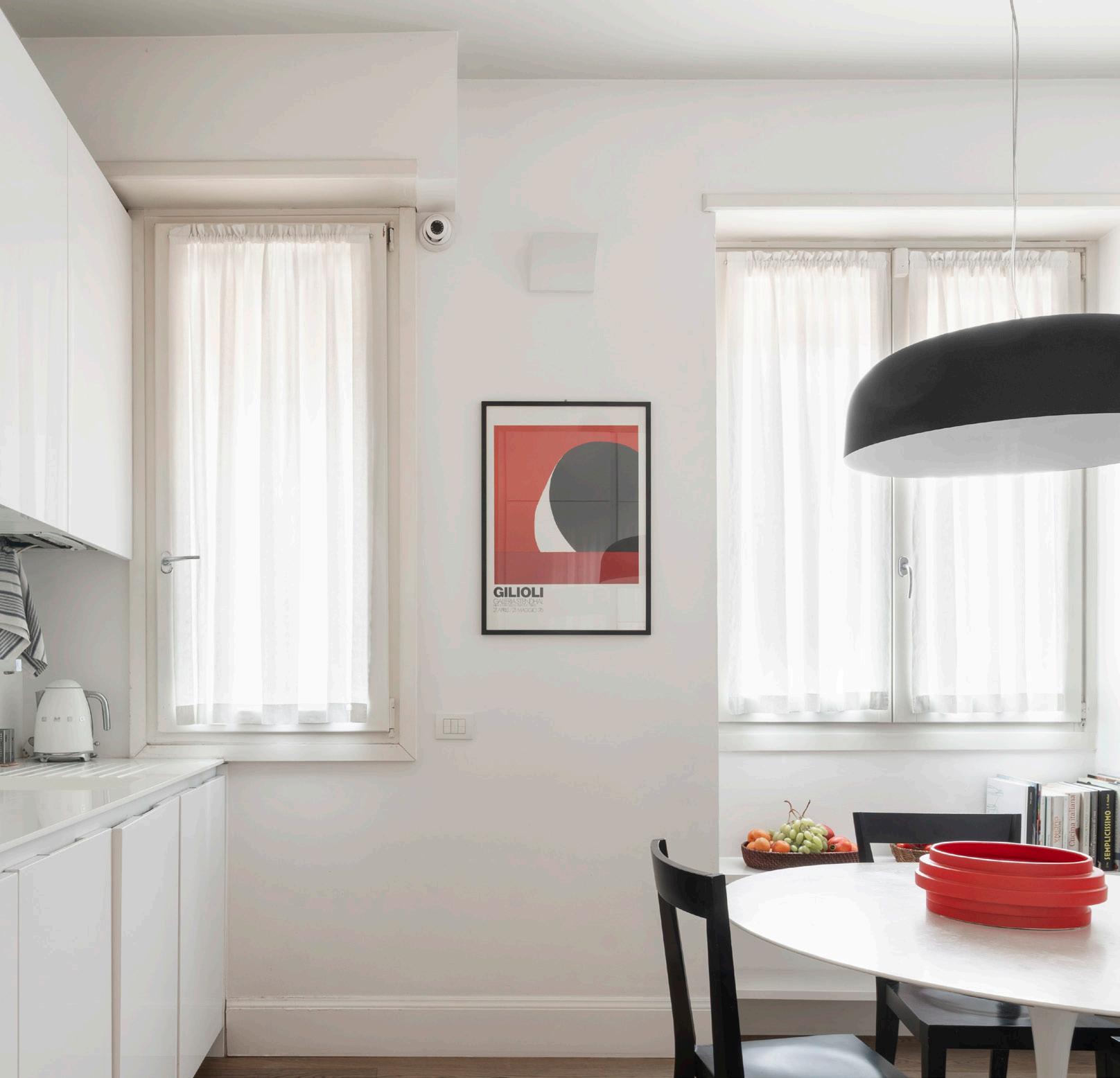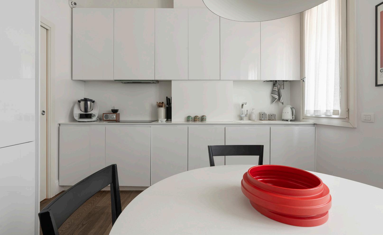 Separata ma ben integrata nella composizione dell’appartamento, la cucina è abitabile, già arredata e pronta all’uso. Un ambiente raccolto ma funzionale, ideale tanto per la vita di tutti i giorni quanto per momenti conviviali più intimi. Il piano di lavoro è ben distribuito, le superfici sono moderne e facili da mantenere, e l’affaccio contribuisce a rendere lo spazio luminoso e piacevole. Una vera risorsa per chi ama cucinare senza rinunciare allo stile.