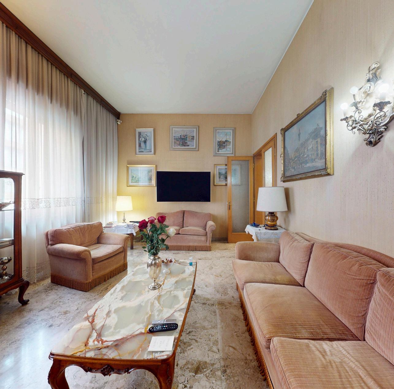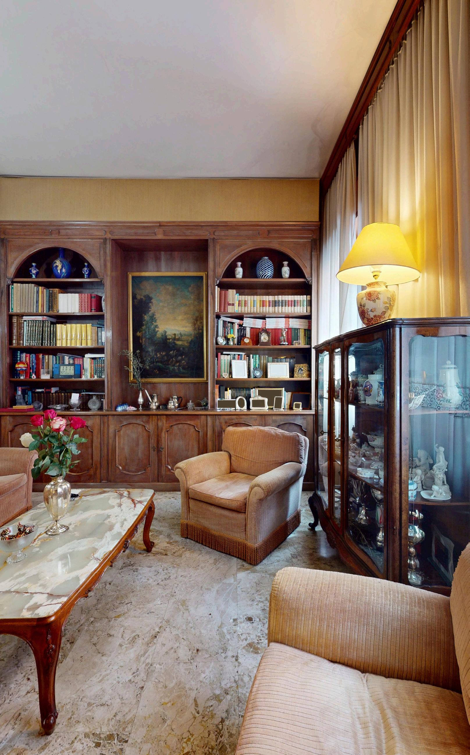 Il grande salone al piano rialzato accoglie con volumi generosi e luce naturale, un ambiente pensato per la convivialità e la rappresentanza. Gli alti soffitti, i tagli regolari e il dialogo continuo con l’esterno restituiscono respiro e personalità, lasciando ampio margine alla personalizzazione. Qui, ogni progetto d’arredo trova spazio e proporzione. È la zona della casa che definisce il ritmo degli incontri e della quotidianità.