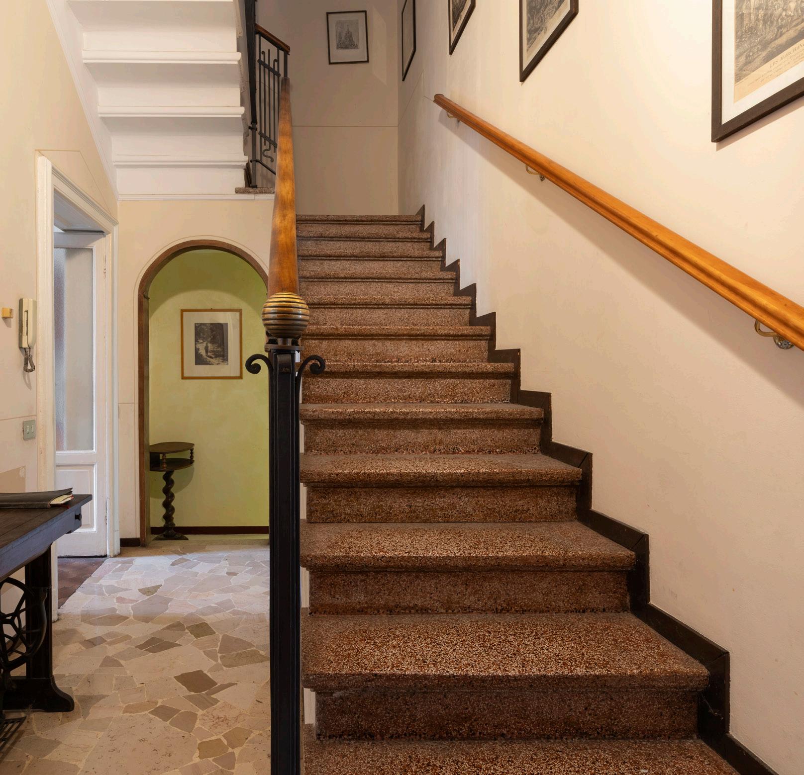 collegamento funzionale tra tre livelli, perfettamente integrato nello stile della casa