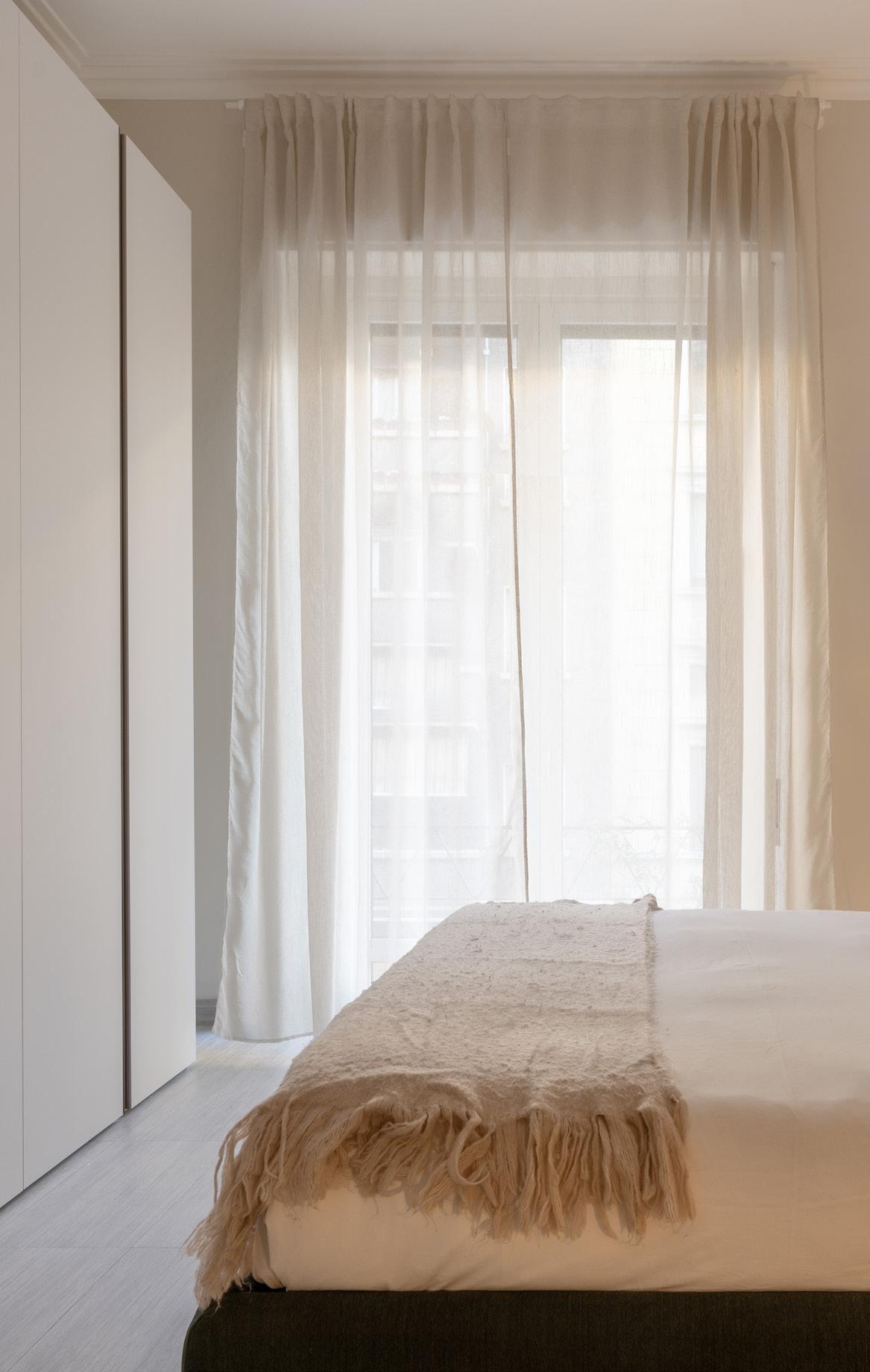 La camera matrimoniale conserva intimità e riservatezza. La metratura generosa consente di arredarla con armadiature capienti e un letto di ampie dimensioni, mantenendo equilibrio e respiro. È uno spazio dedicato al riposo, con un’atmosfera sobria e silenziosa che amplifica la qualità abitativa.