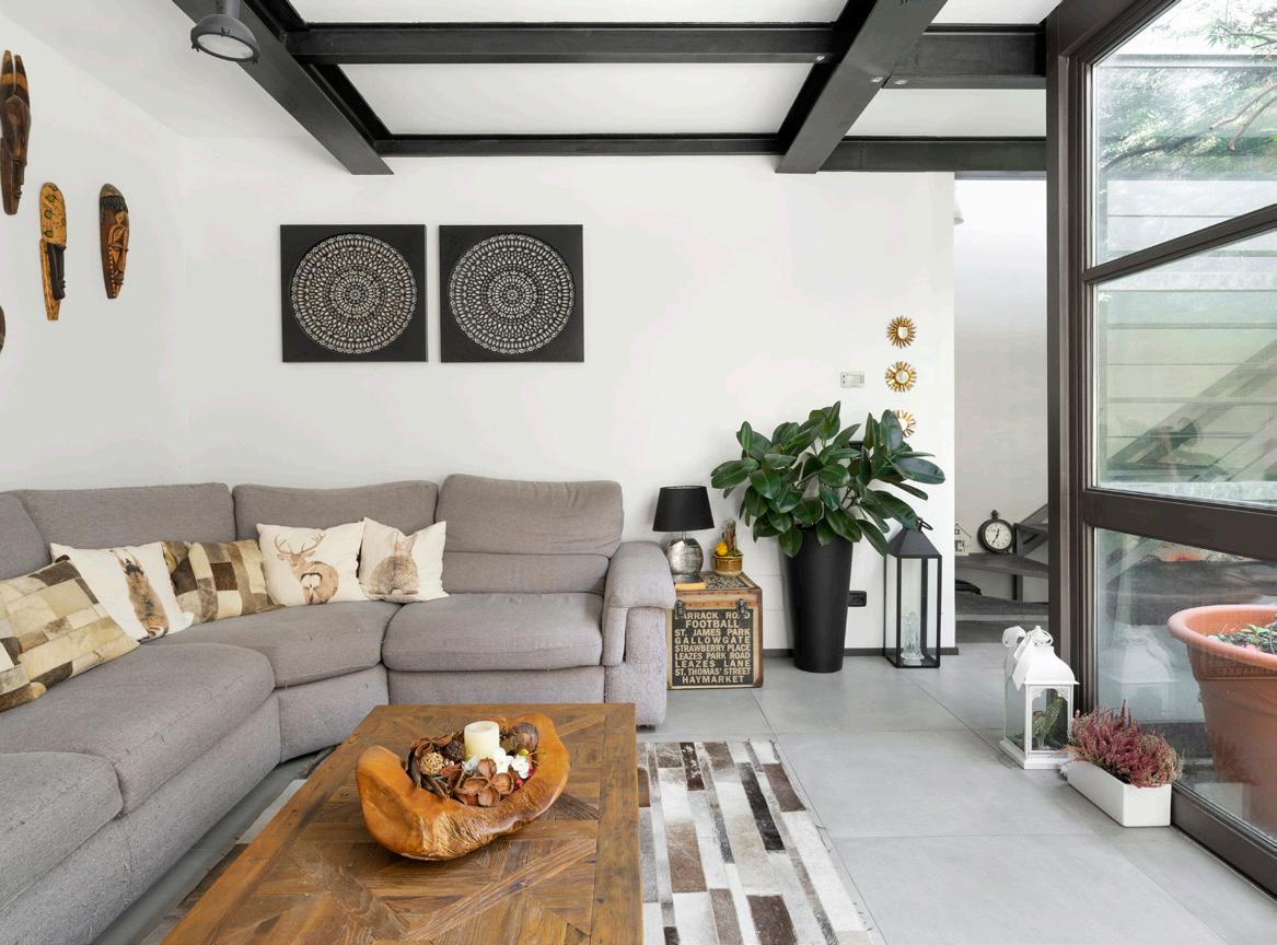 All’ingresso della proprietà si apre una prima zona adibita a locale hobby e ricevimento da cui si accede alla zona giorno, sviluppata intorno al patio interno sapientemente piantumato e progettato per diventare un estensione del soggiorno.