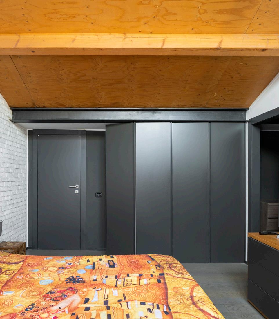 Qui troviamo anche due ampie camere da letto di cui una con bagno en suite e cabina armadio e una terza stanza accatastata come ripostiglio in quota adattabile a vari usi.
