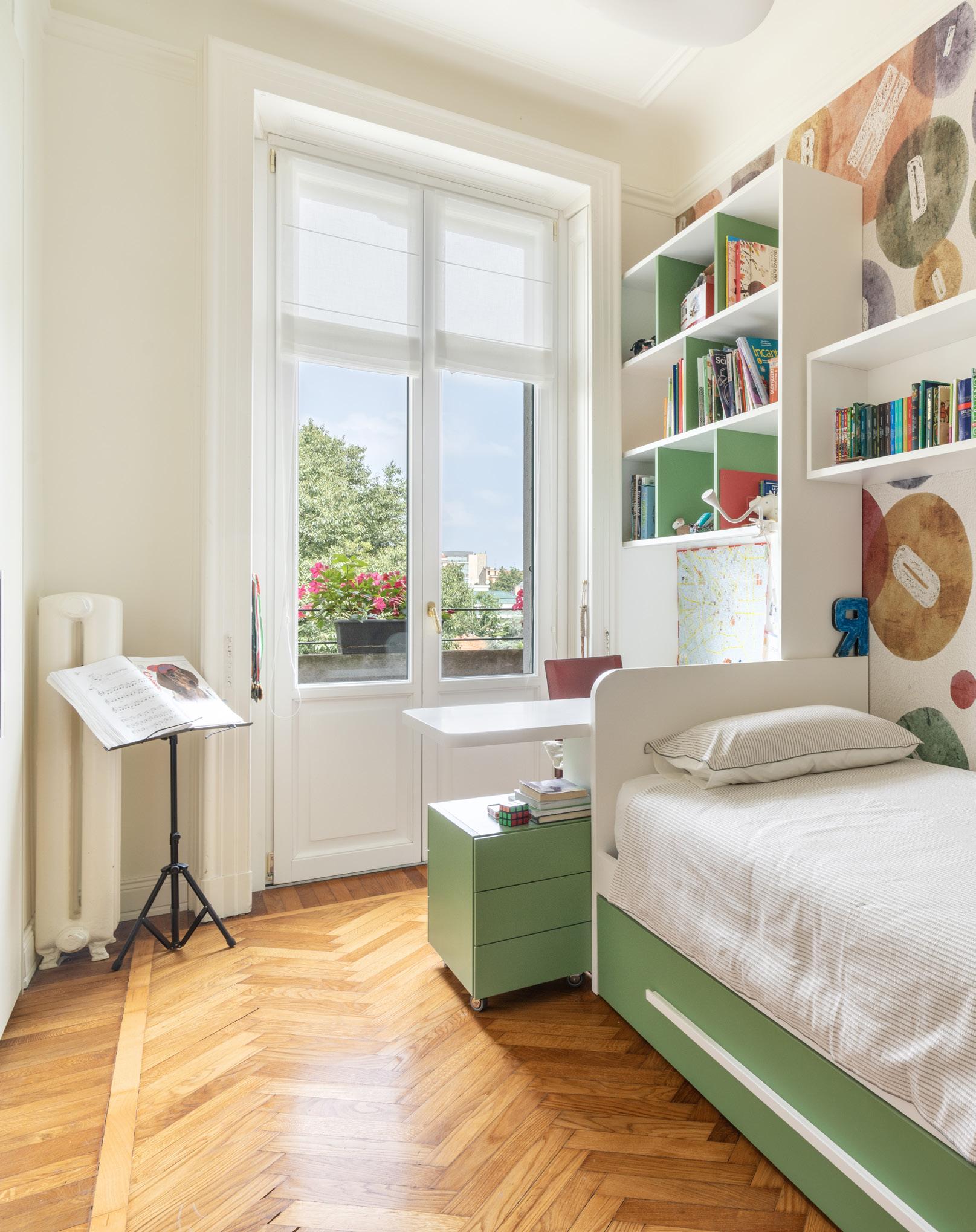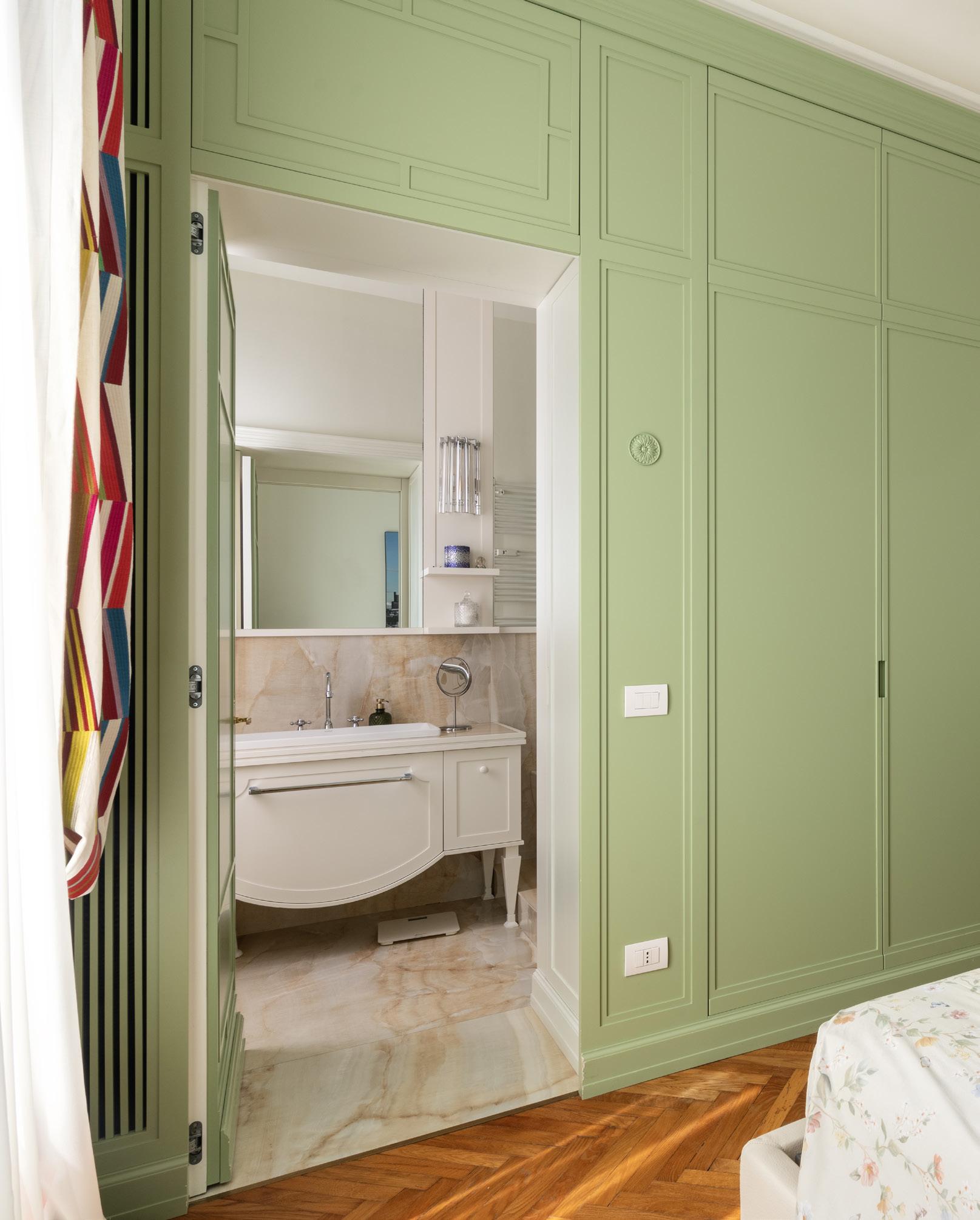 La zona notte è composta da tre camere da letto, due delle quali matrimoniali e una con bagno en suite. Gli spazi sono arricchiti da finiture su misura, boiserie in legno e armadi su misura, evocando le eleganti dimore del primo Novecento. Ogni camera è un rifugio ideale di tranquillità, progettato per offrire il massimo comfort e privacy.