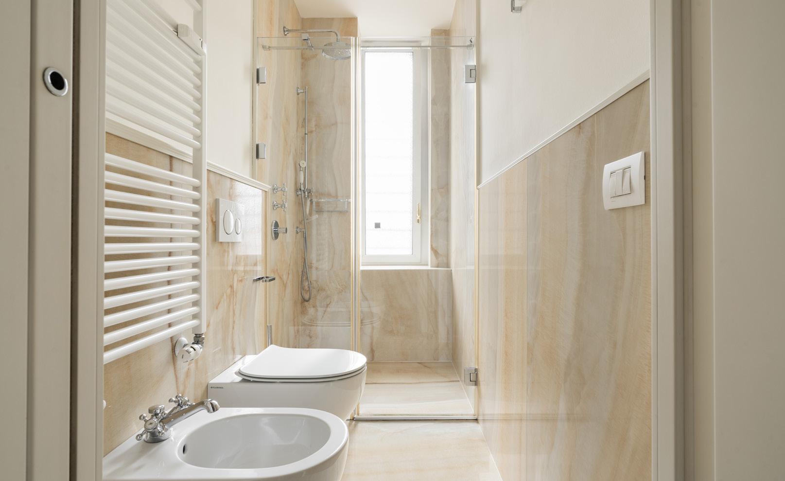 La residenza dispone di due bagni eleganti, entrambi finestrati e dotati di box doccia. Ogni dettaglio, dai rivestimenti pregiati alle finiture di qualità, è stato curato con attenzione per garantire funzionalità e raffinatezza, per restituirti un’atmosfera di puro benessere e lusso.