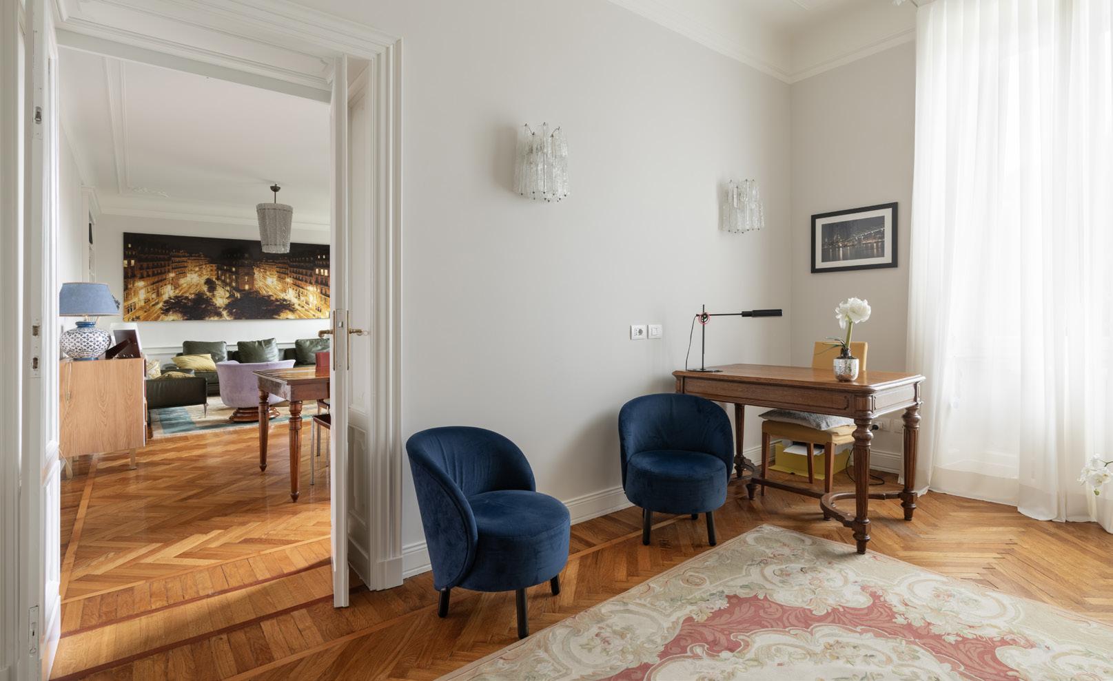 L’ingresso, accogliente e luminoso, ti invita a scoprire il salone triplo con soffitti alti 3,3 metri e un balcone che si affaccia sull’incantevole Via Correggio. Adiacente al salone, la sala da pranzo si collega a un silenzioso studio, trasformabile all’occorrenza in una quarta camera da letto. Questo spazio, perfetto per momenti di relax e convivialità, è l’epitome dell’eleganza e del comfort, e mantiene il fascino delle dimore del primo Novecento.