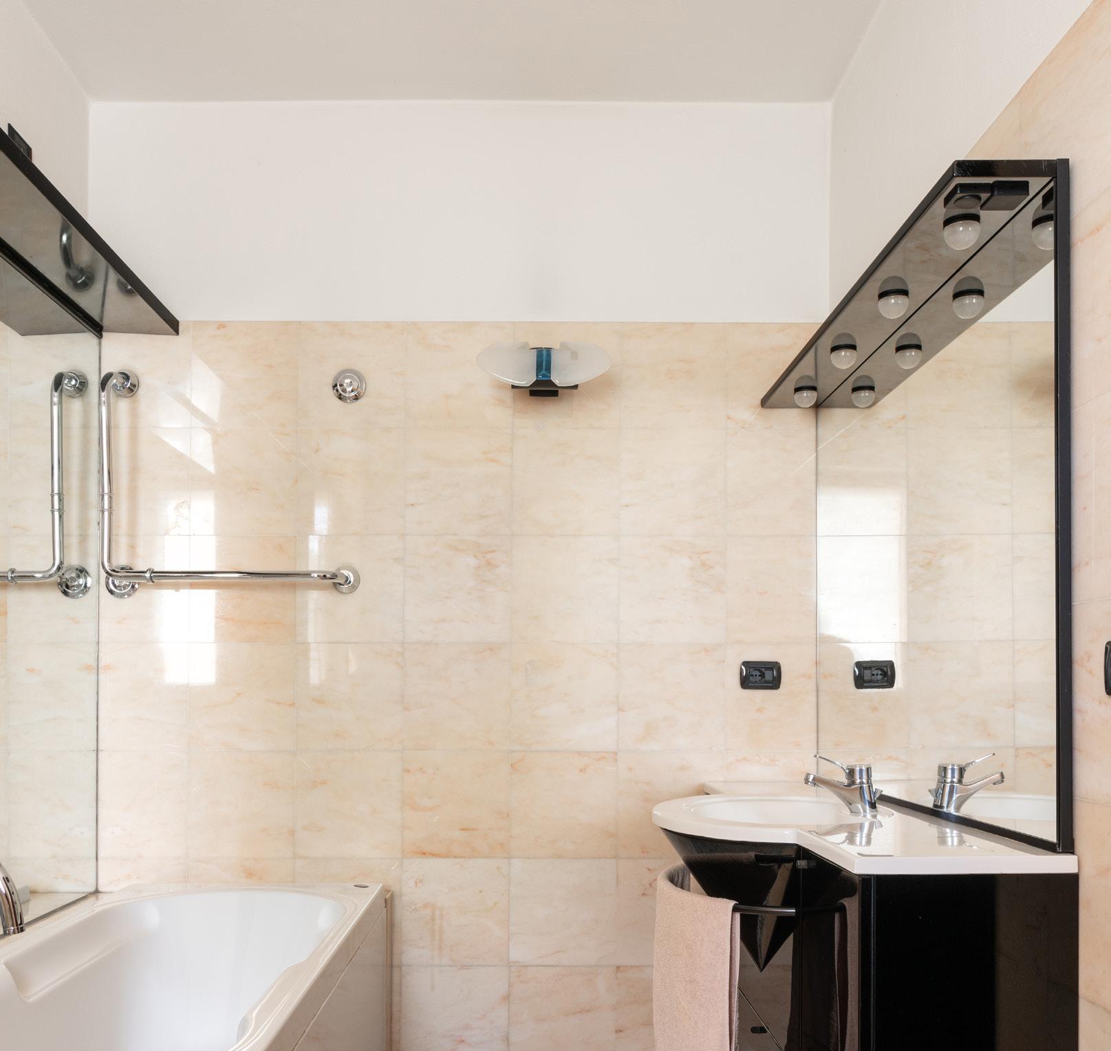 I due spaziosi bagni, finemente rifiniti con marmi pregiati e dotati di ogni comfort, rappresentano un’elegante fusione di funzionalità e stile. La cura dei dettagli e la qualità dei materiali conferiscono un tocco di raffinatezza e comfort a ogni momento della giornata..