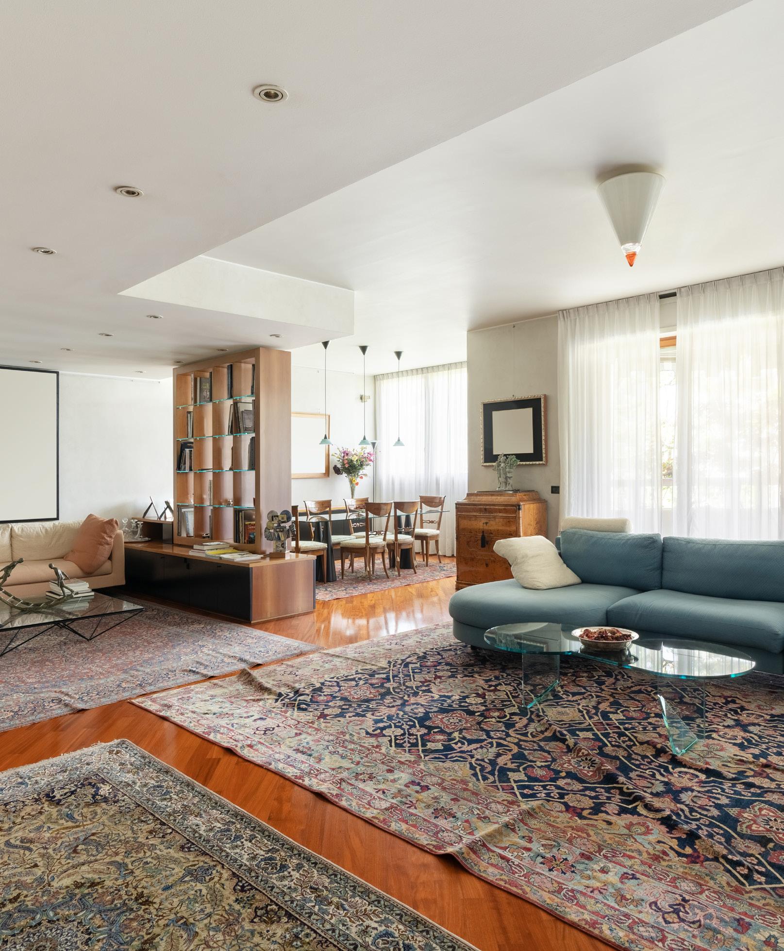 L’elegante salone triplo e la sala da pranzo di questo appartamento sono un capolavoro di comfort e stile. Gli arredi su misura sono preziosi e disegnano gli spazi di questi ampi volumi a disposizione. I grandi terrazzi che si affacciano sul giardino estendono poi l’idea di living, creando l’ambiente perfetto per ritrovarsi e rilassarsi da soli e in compagnia dei propri cari.