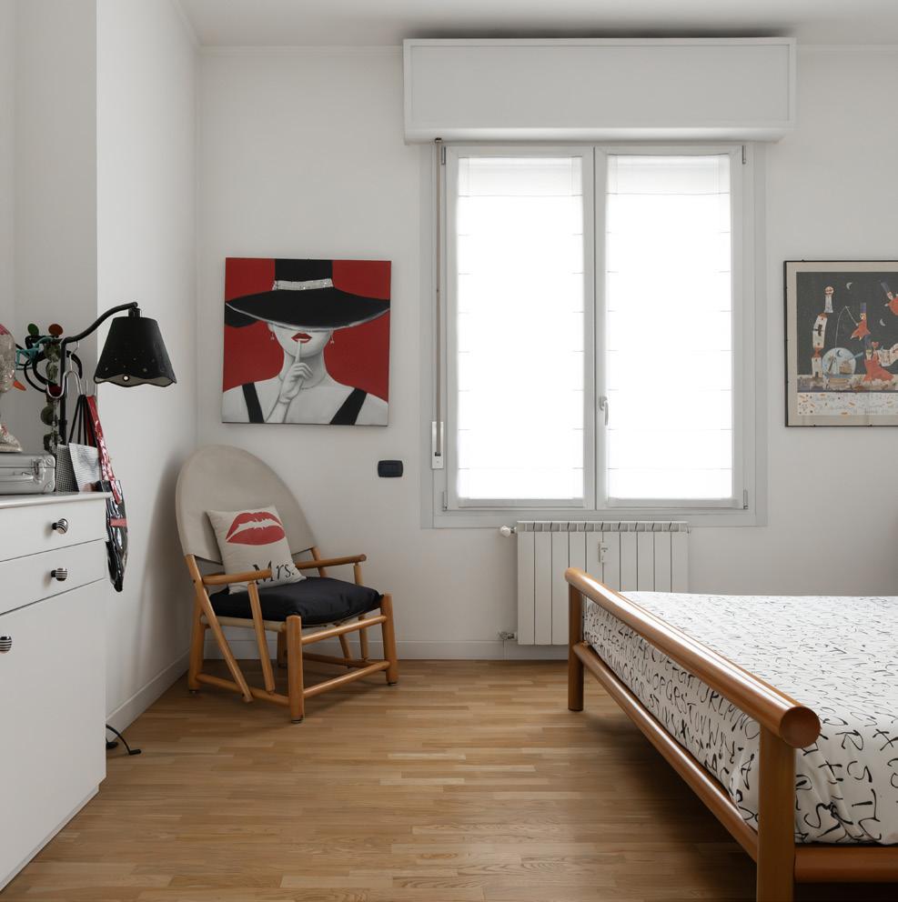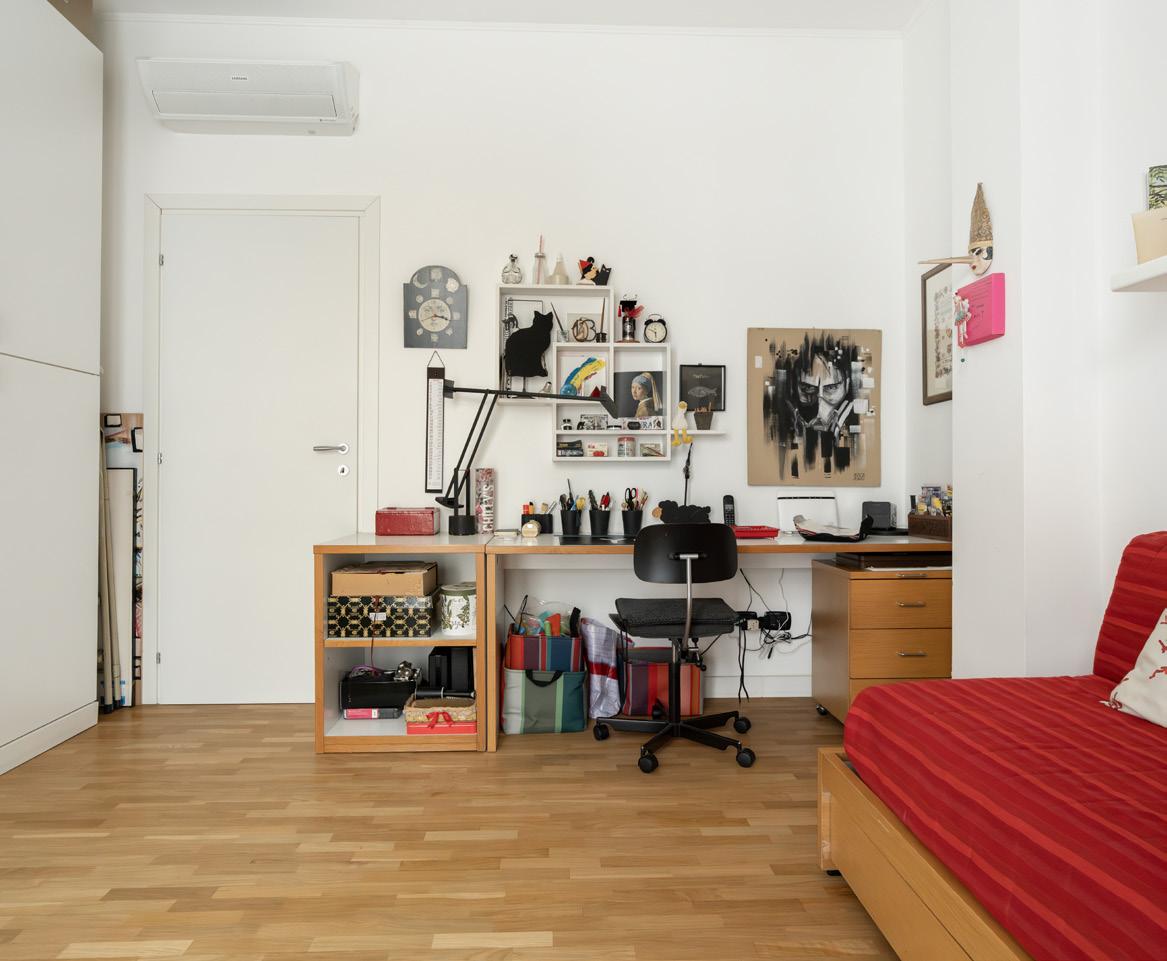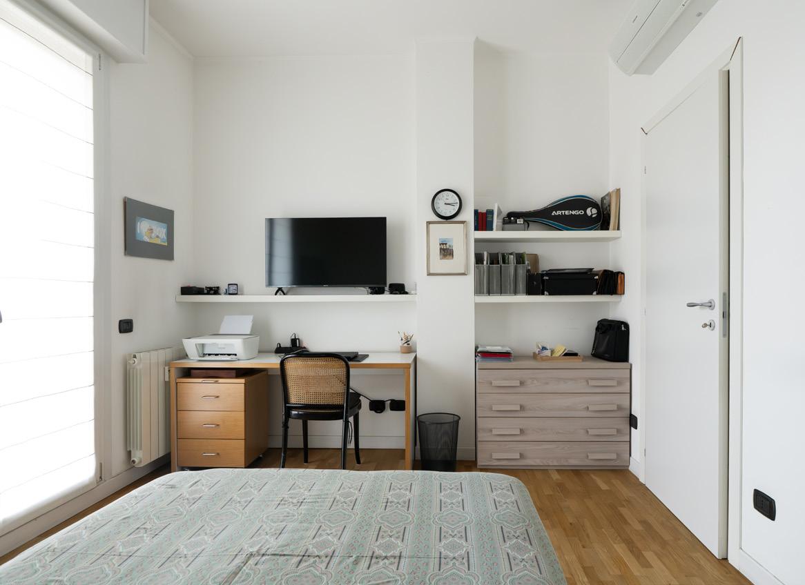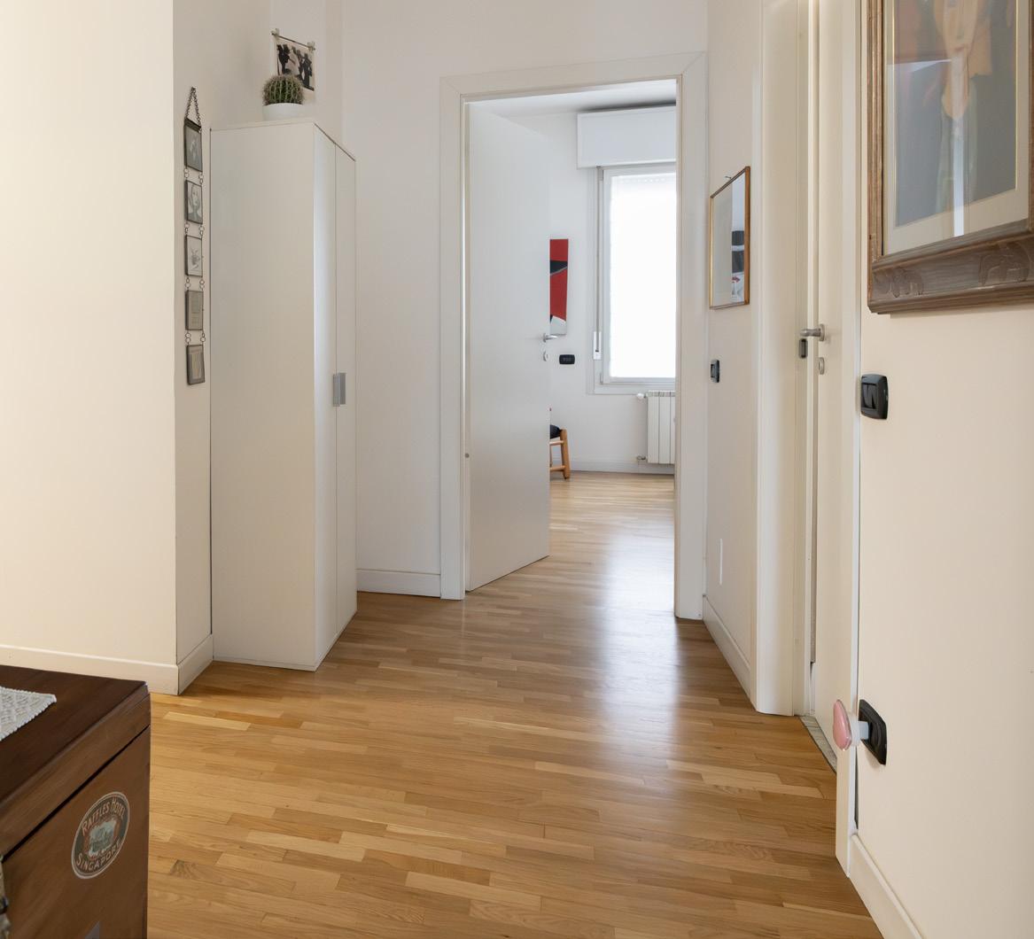Tre camere da letto garantiscono proporzioni regolari, luce naturale e silenzio. Il pavimento in legno e le pareti neutre restituiscono calore e immediatezza, pronti ad accogliere arredi su misura. Ogni stanza trova il proprio equilibrio tra intimità e funzionalità, con aperture ampie e affacci riservati.