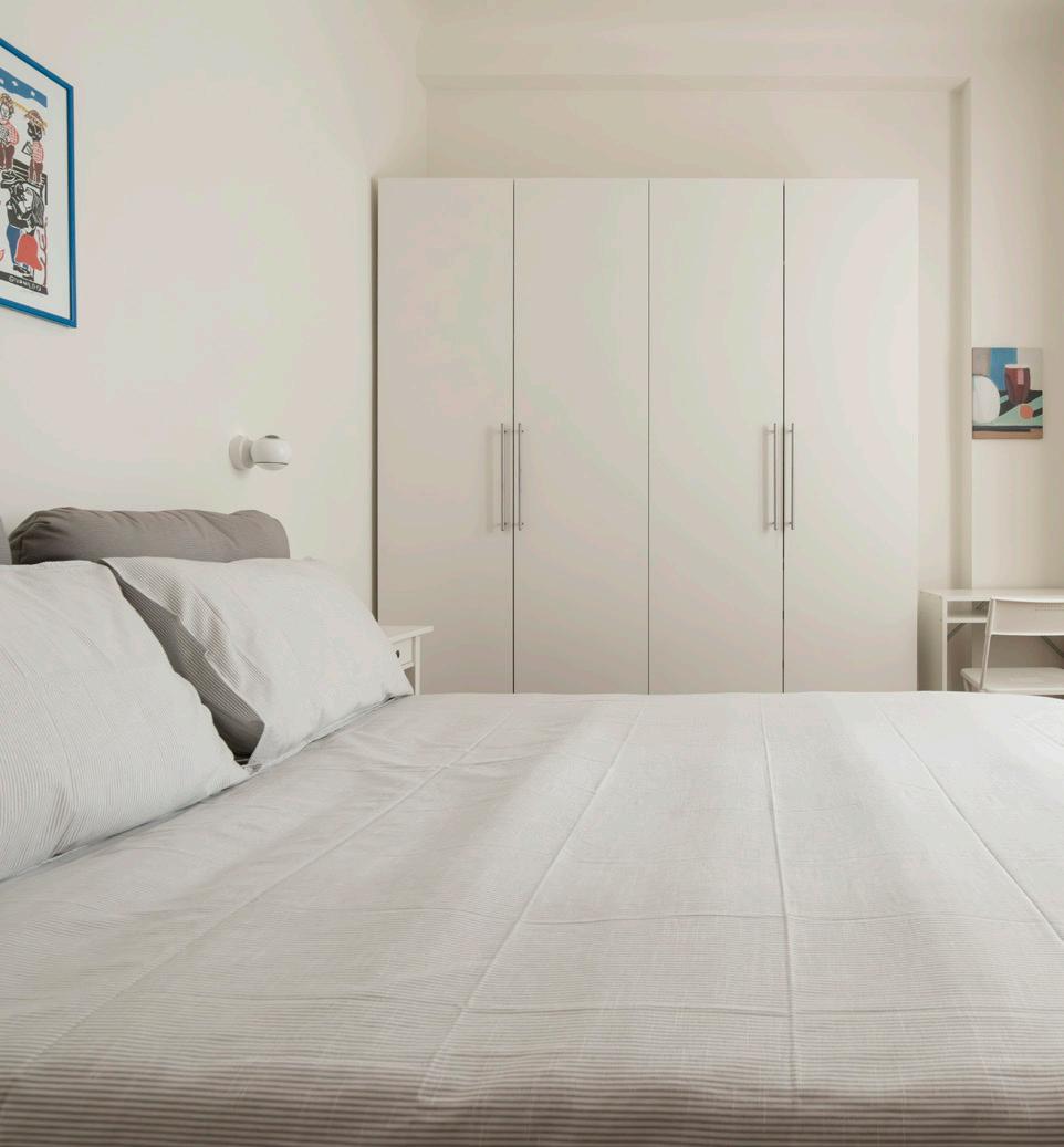 La camera da letto è un invito alla quiete. Raccolta, luminosa e ben organizzata, è pensata per offrire comfort e relax, con arredi scelti per accompagnare ogni gesto quotidiano con sobrietà ed efficienza. Pavimenti in parquet, tonalità rilassanti e spazi contenitivi ben progettati la rendono una stanza pronta ad accogliere ogni sera come fosse la prima.