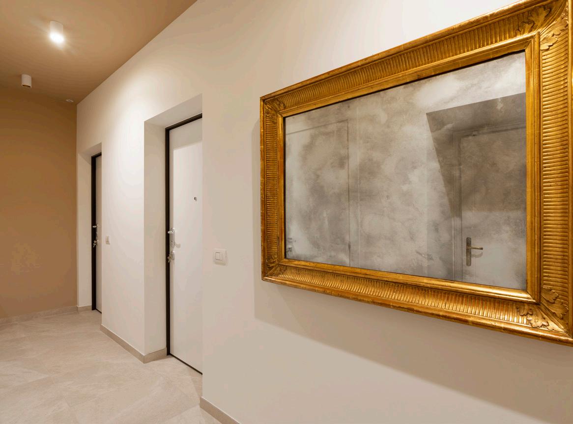 Il pianerottolo ordinato, servito da doppio ascensore, e le parti comuni ben mantenute raccontano lo standing dello stabile. Il servizio di portineria mezza giornata garantisce sicurezza e presenza, mentre la silenziosità del contesto interno rende ogni rientro uno dei piaceri della giornata.
