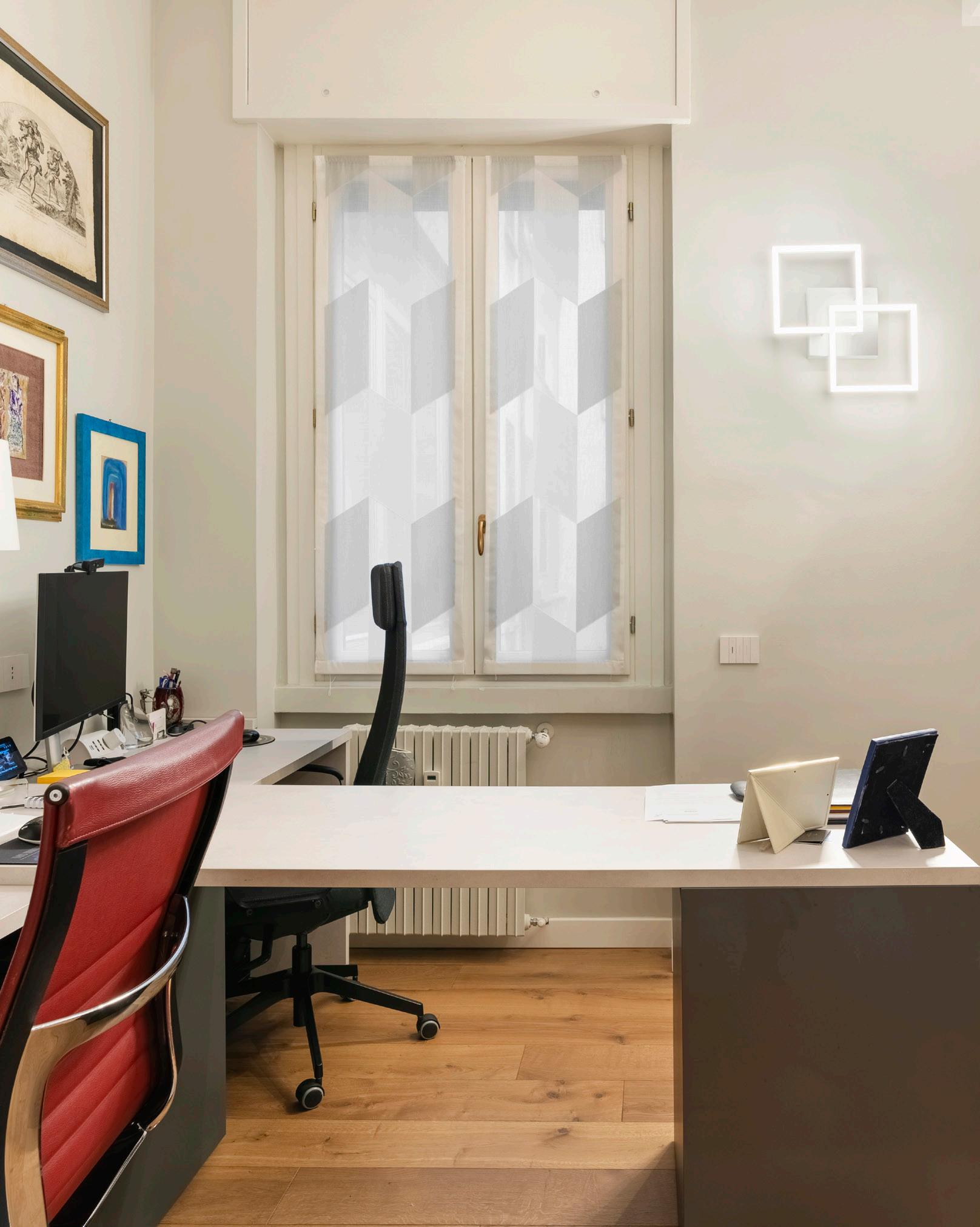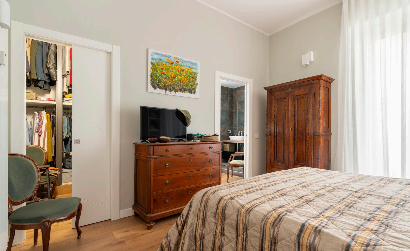 All’interno della zona notte, accanto alla camera padronale, trovi un raffinato studio, un ambiente versatile che può diventare il tuo angolo di lavoro o un rifugio tranquillo per la lettura. Arredato con gusto, lo spazio è pensato per offrire un’atmosfera di serenità, ideale per la concentrazione o un momento di pausa. Con una finestra che illumina la stanza di luce naturale, questo spazio può essere personalizzato per adattarsi alle tue esigenze, trasformandosi in un luogo accogliente e funzionale.