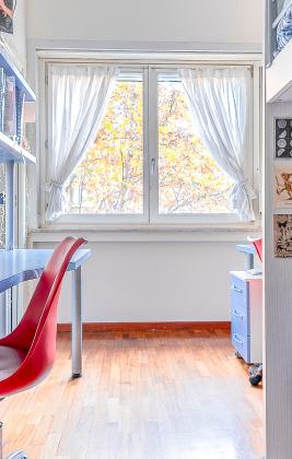 Le due camere da letto garantiscono tranquillità e comfort grazie all’affaccio interno e alla qualità degli infissi. La camera principale è arricchita da una cabina armadio dedicata, capiente e ben organizzata. Spazi privati equilibrati, pensati per un uso quotidiano comodo e funzionale.