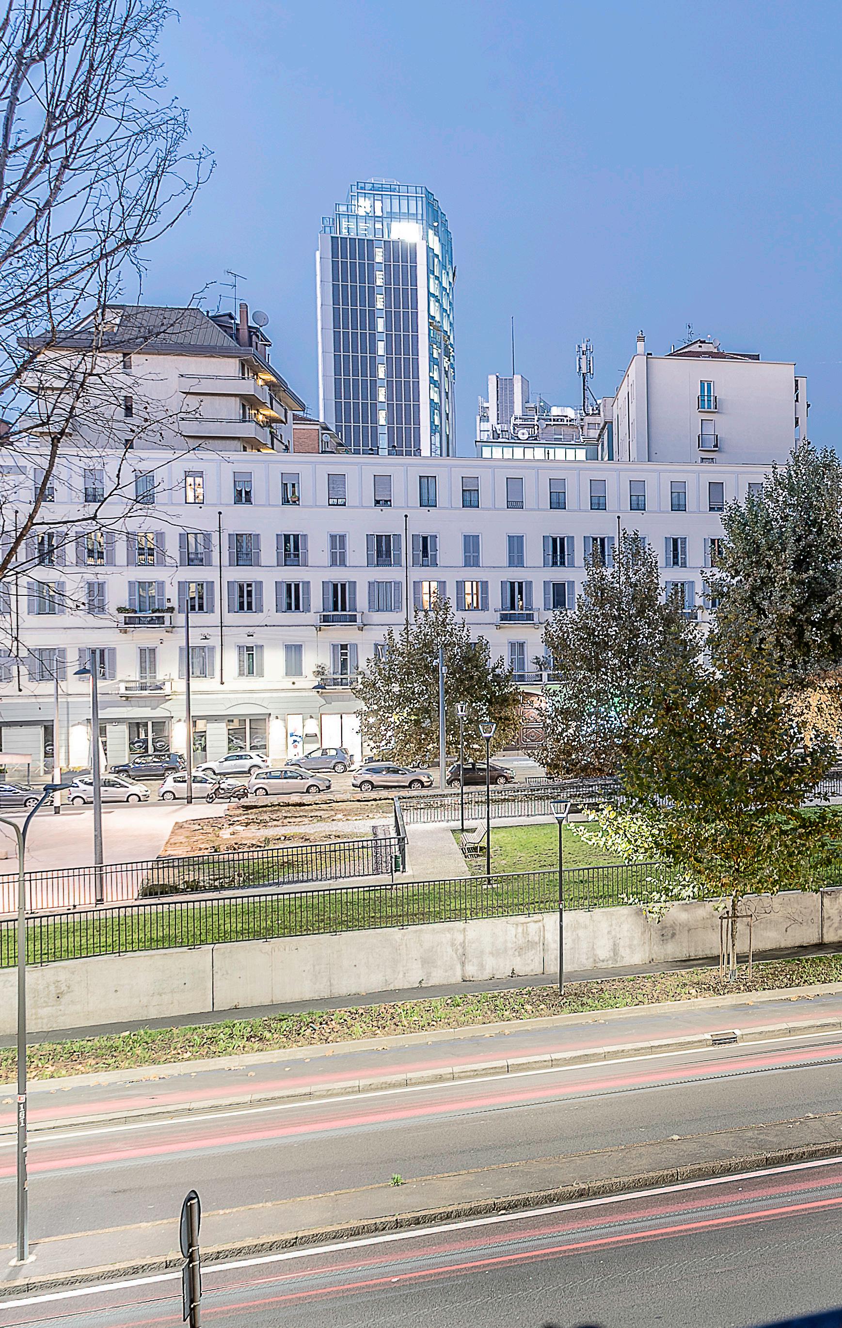 I due balconi affacciati su Via Varese aprono lo sguardo verso Porta Nuova, regalando una prospettiva luminosa sul nuovo skyline milanese. La luce entra piena nelle stanze e amplifica il carattere contemporaneo dell’appartamento, mentre l’affaccio esterno garantisce profondità e respiro agli ambienti. Una vista che cambia con le ore della giornata e che racconta, da sola, il valore del vivere in questa parte di Brera.