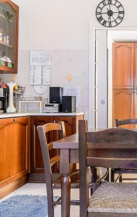 Il soggiorno è luminoso e accogliente, grazie alle aperture verso l’esterno e la cucina a vista che si integra con discrezione, rendendo lo spazio conviviale e facile da vivere.