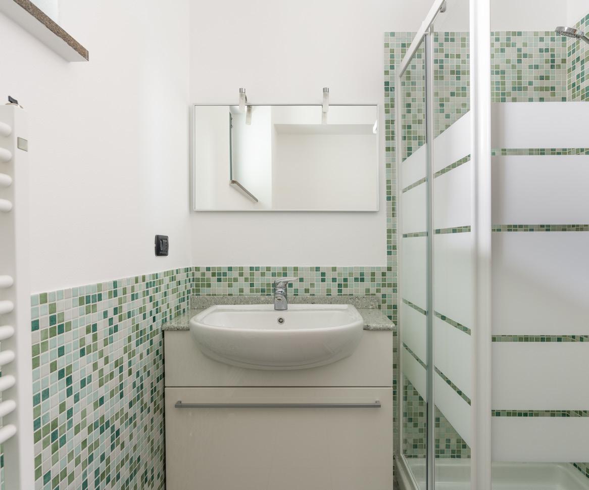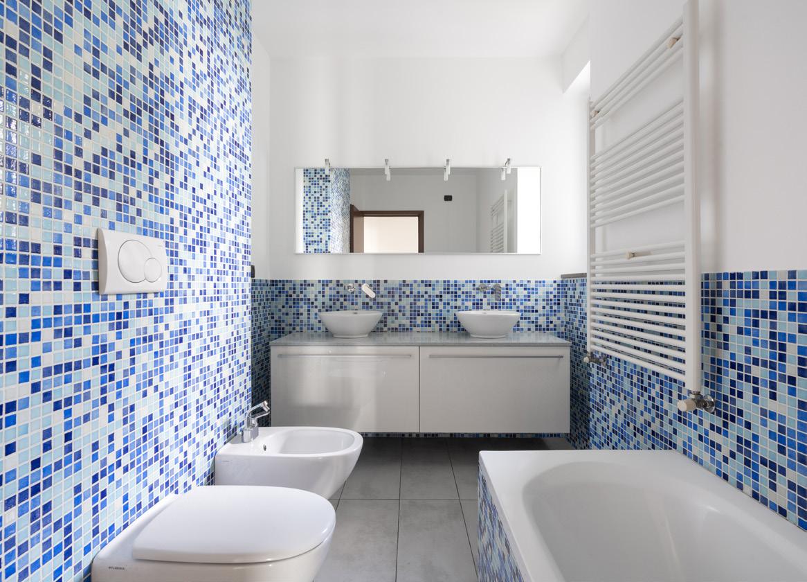 BAGNO con splendida piastrellatura a mosaico in fantasia blu