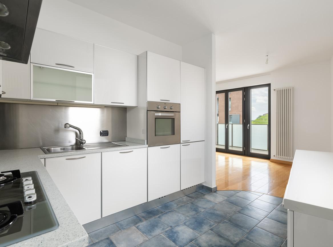 La cucina a vista è un capolavoro di funzionalità e design. Dotata di moderne attrezzature e finiture di pregio, si apre sul balcone che aggiunge luminosità e respiro all’ambiente. La disposizione aperta favorisce l’interazione e rende questo spazio perfetto per cene e incontri.