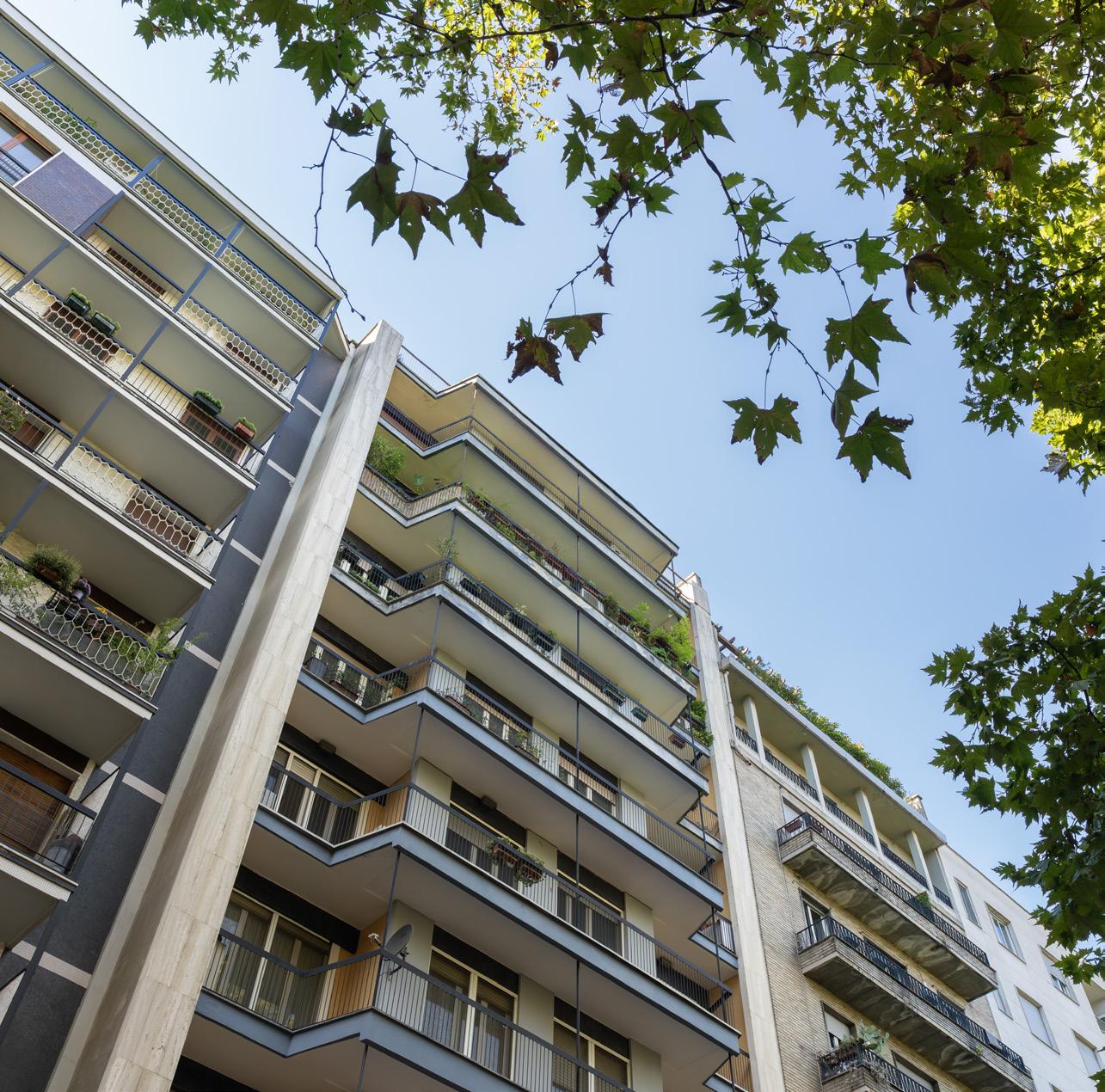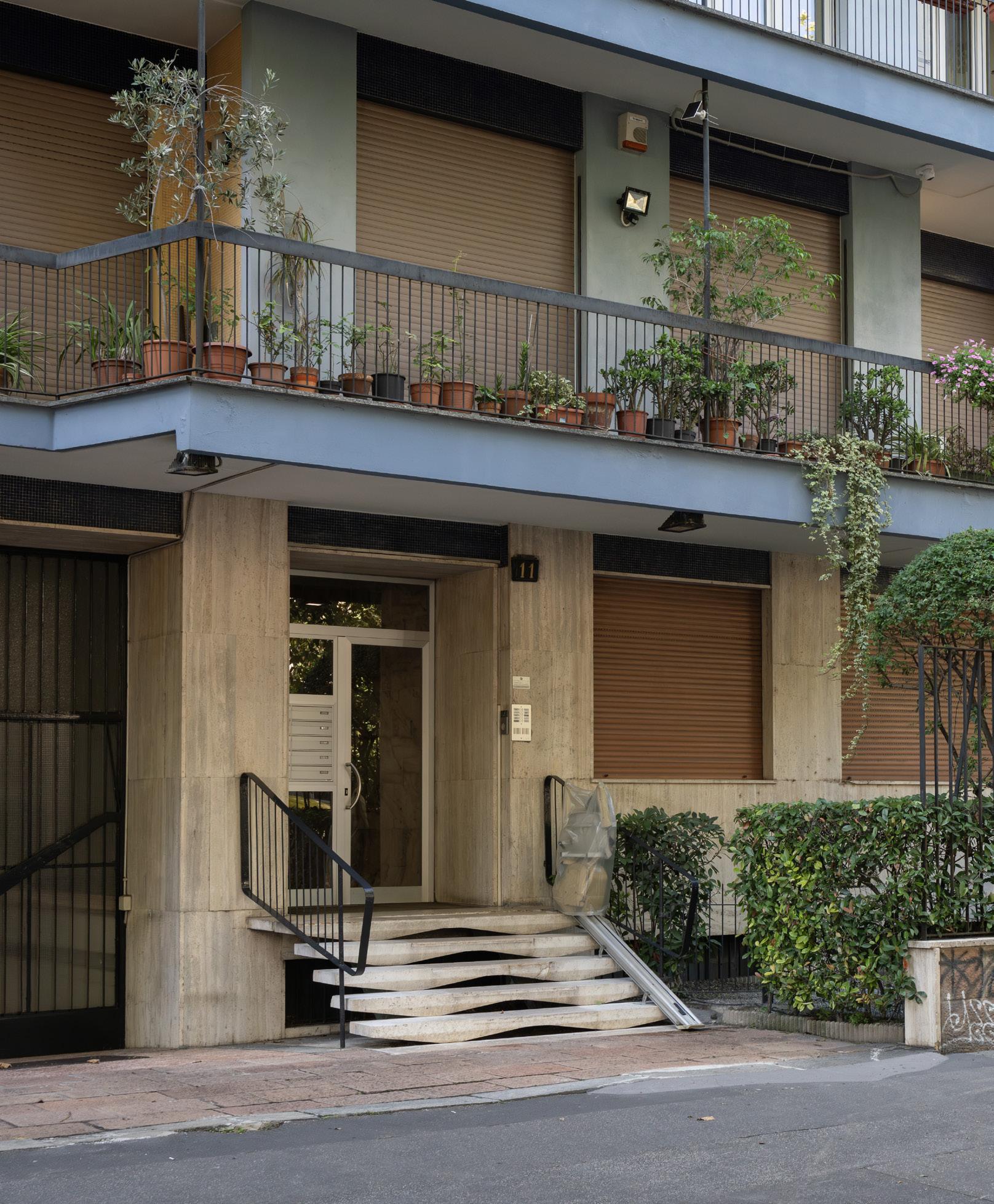 Il palazzo, espressione dell’architettura razionale milanese, conserva tutto il carattere degli anni Sessanta: proporzioni armoniche, facciate scandite da balconi verdi e spazi comuni curati. L’ingresso, con le sue finiture in marmo e le geometrie essenziali, accoglie in un’atmosfera ordinata e signorile. Qui la bellezza non è ostentata: è quella sobria, quotidiana, che fa parte della storia urbana di questa città.