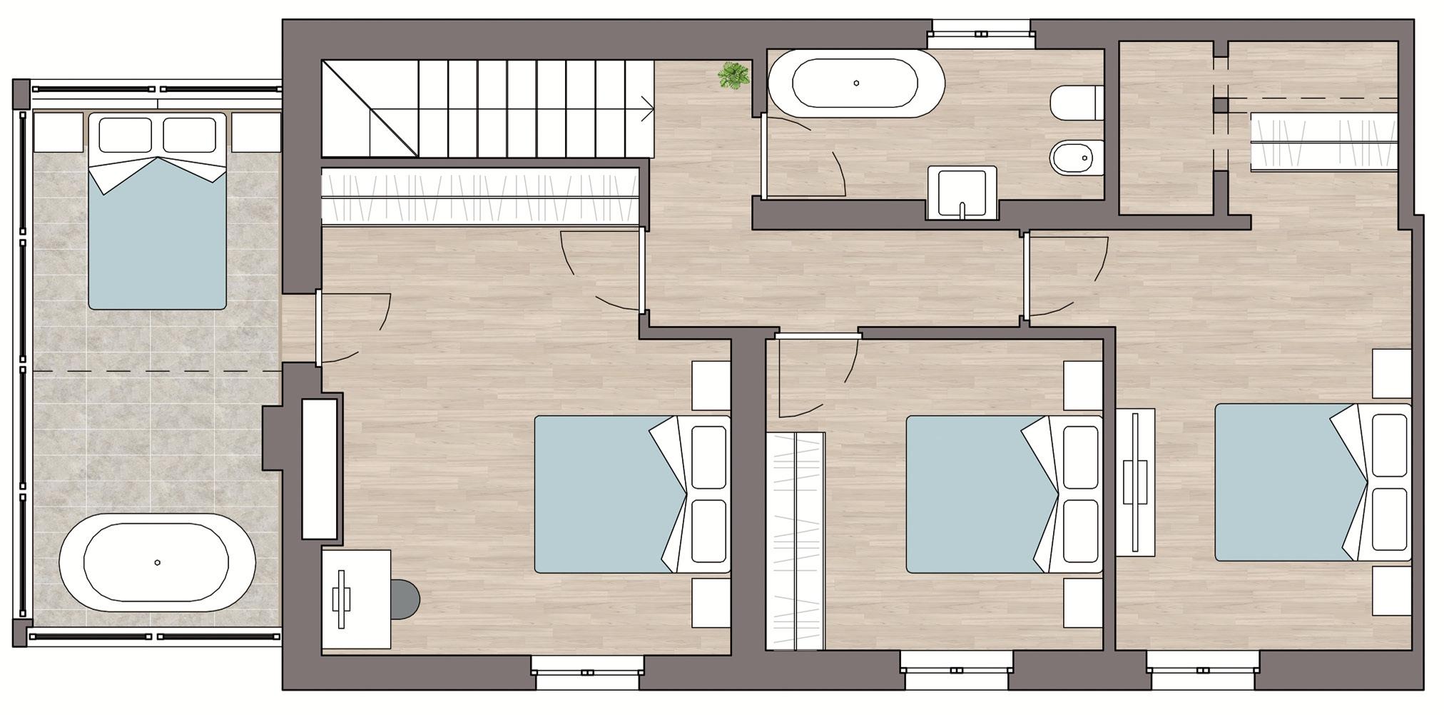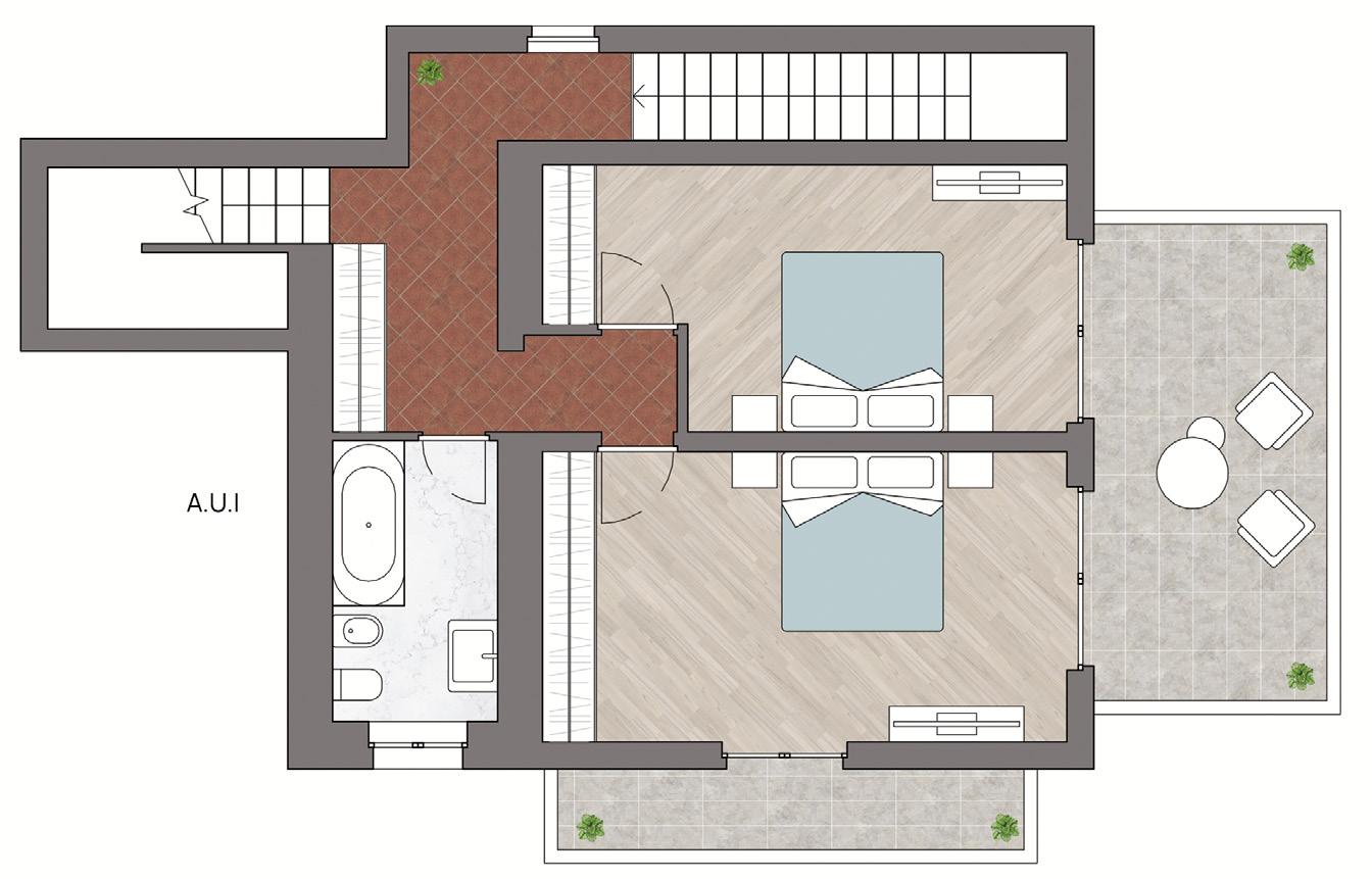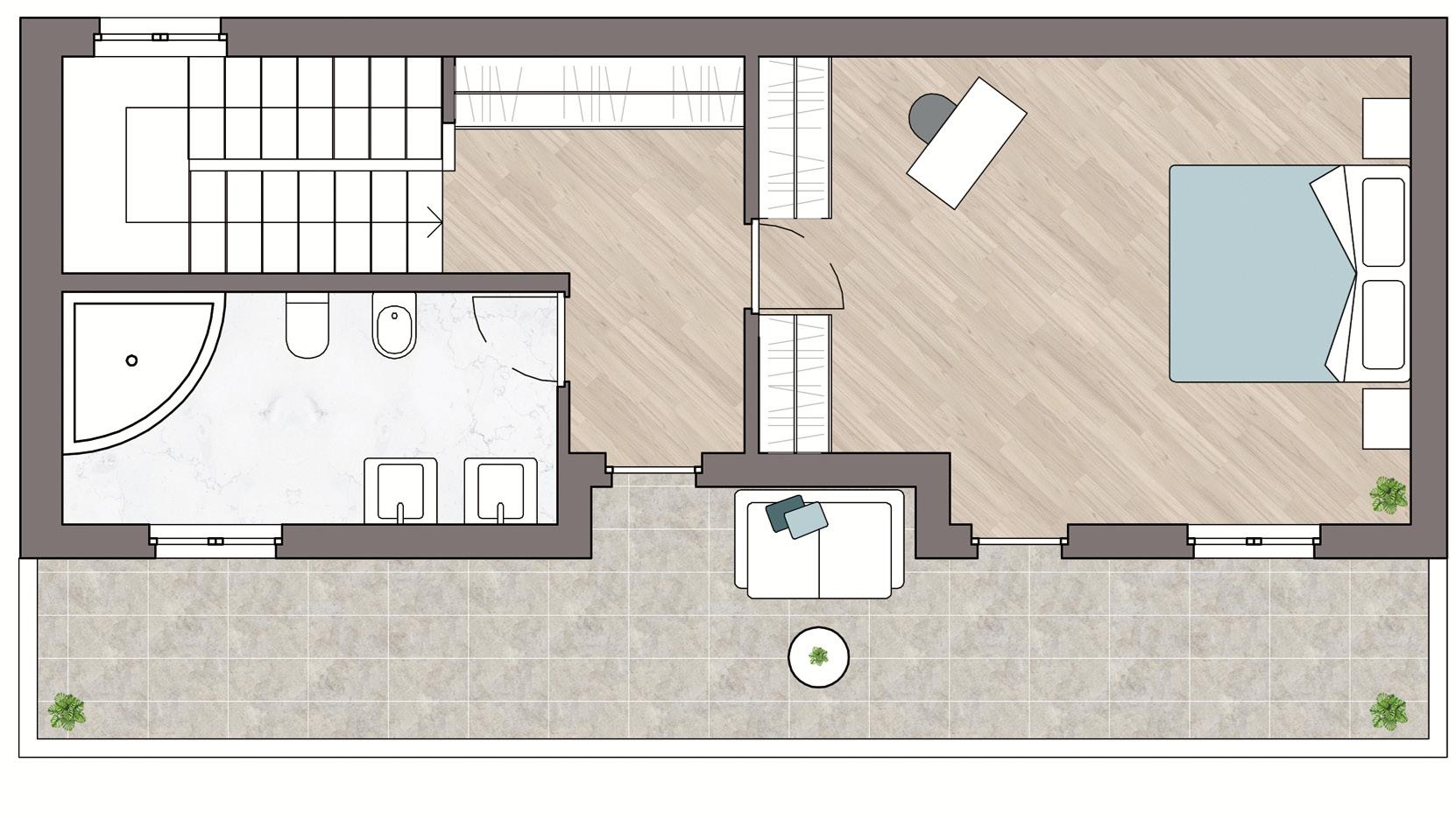 L’abitato, in perfetto stile provenzale, prevede ampi spazi di relax, al piano terra zona giorno con cucina mentre ai piani superiori troviamo le camere da letto con bagni. Impreziosiscono le abitazioni aree come veranda, giardino d’inverno, patio e terrazzini. I pavimenti in cotto, il parquet della zona notte, i marmi e la jacuzzi accrescono il fascino dell’ambiente.